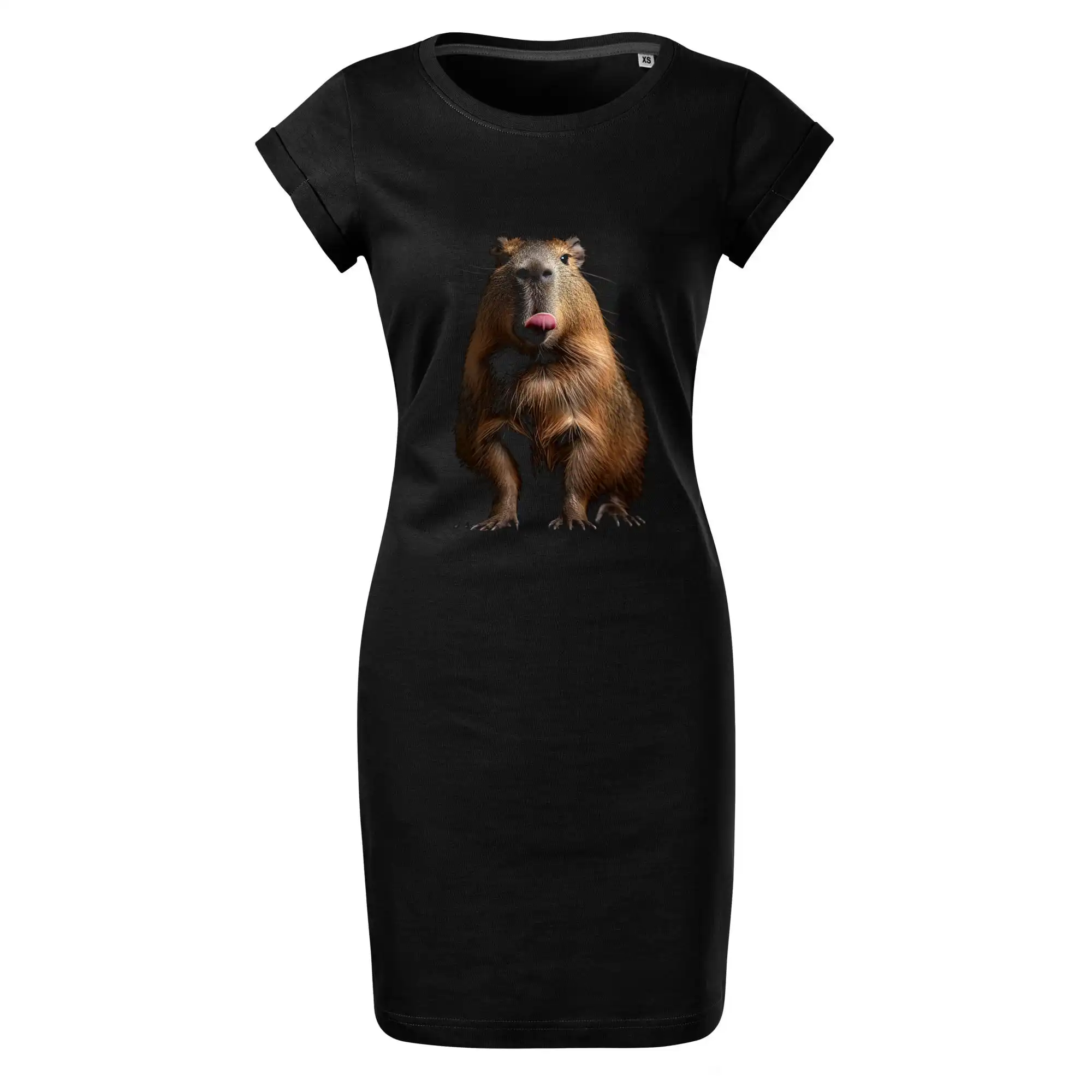 Kapybara s vypláznutým jazykom čierna fotka
