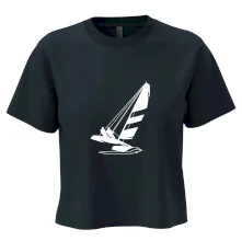 Trendové dámske tričko s veľmi krátkym rukávom, voľnejšieho strihu, v dolnom kraji všité do širokého lemu. Okrúhly priekrčník s úzkym lemom zo zhodného materiálu.