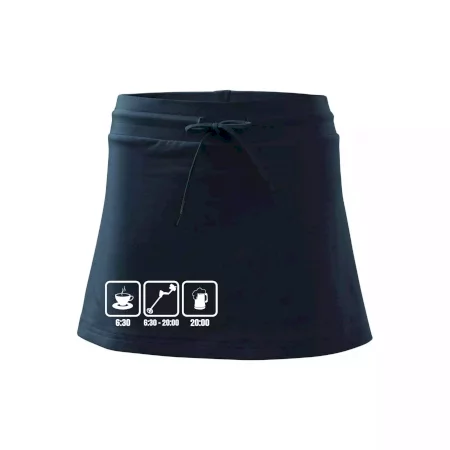 Dámska kraťasová sukňa MALFINI Two in One 604 je perfektnou kombináciou sukne a šortiek, ideálna na šport, voľný čas alebo ležérne nosenie. Vďaka prídavku elastanu si sukňa zachováva tvar a ponúka pohodlie pri pohybe. Krátky strih do tvaru „A“ a široký elastický pás so sťahovacou šnúrkou zabezpečujú voľnosť a prispôsobenie.