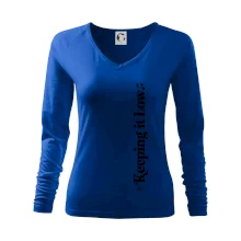 Dámske tričko s ľahko priliehavým strihom, ktorý pôsobí elegantne a skvele padne. Tento typ trička má kratšie rukávy a hlbší výstrih zakončený jemným lemovaním.