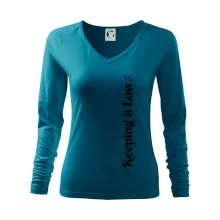 Tolerantnejšie priliehavý dámsky strih, ktorý je vhodný pre všetky typy postavy, ideálna dĺžka rukávov a konzervatívny výstrih zakončený rebrovaním, ktoré skvele drží tvar.
