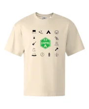 Tričko strednej gramáže vo farbách camouflage. Strih s bočnými švami. Lem priekrčníku z rebrového úpletu s prídavkom 5% elastanu. Vnútorná časť zadného priekrčníka začistená páskou vo farbe camouflage.