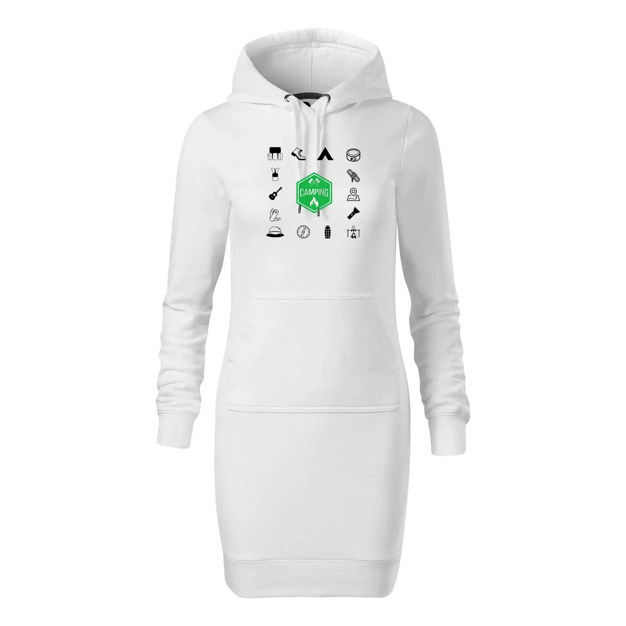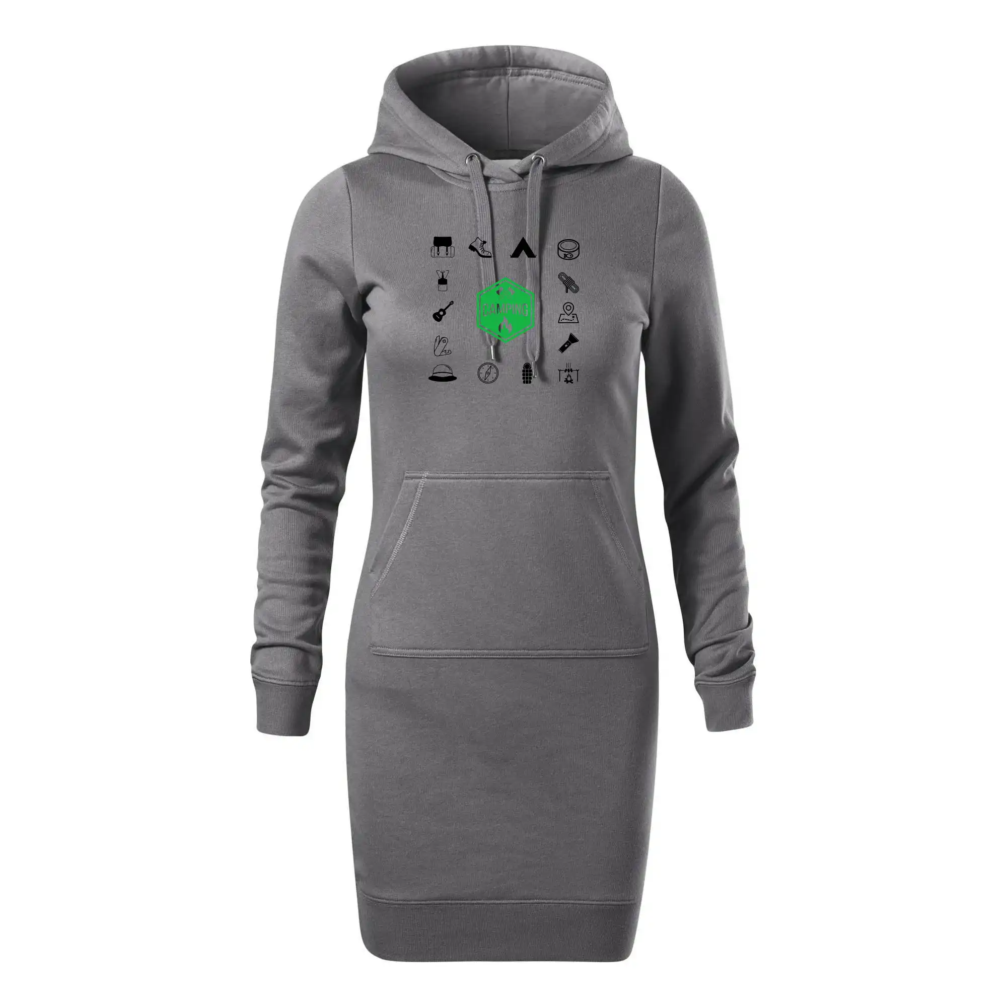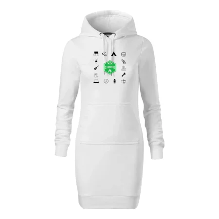 Dámske mikinové šaty MALFINI Snap 419 sú ideálnou voľbou pre ženy, ktoré hľadajú pohodlný a štýlový kúsok na voľný čas alebo každodenné nosenie. Ľahko vypasovaný strih s bočnými švami podčiarkuje ženskú siluetu, zatiaľ čo kapucňa s podšívkou a sťahovacou šnúrkou dodáva ležérny vzhľad. Šaty majú dĺžku nad kolená a sú vybavené našitým vreckom v štýle „klokanky“. Materiál je mäkký a príjemný na dotyk grâce à smesi bavlny a polyesteru s nepočesanou vnútornou stranou.