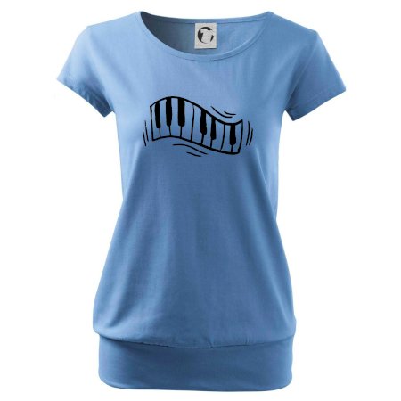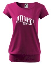 Trendové dámske tričko s veľmi krátkym rukávom, voľnejšieho strihu, v dolnom kraji všité do širokého lemu. Okrúhly priekrčník s úzkym lemom zo zhodného materiálu.