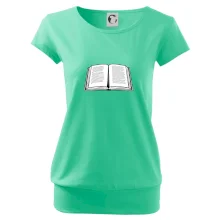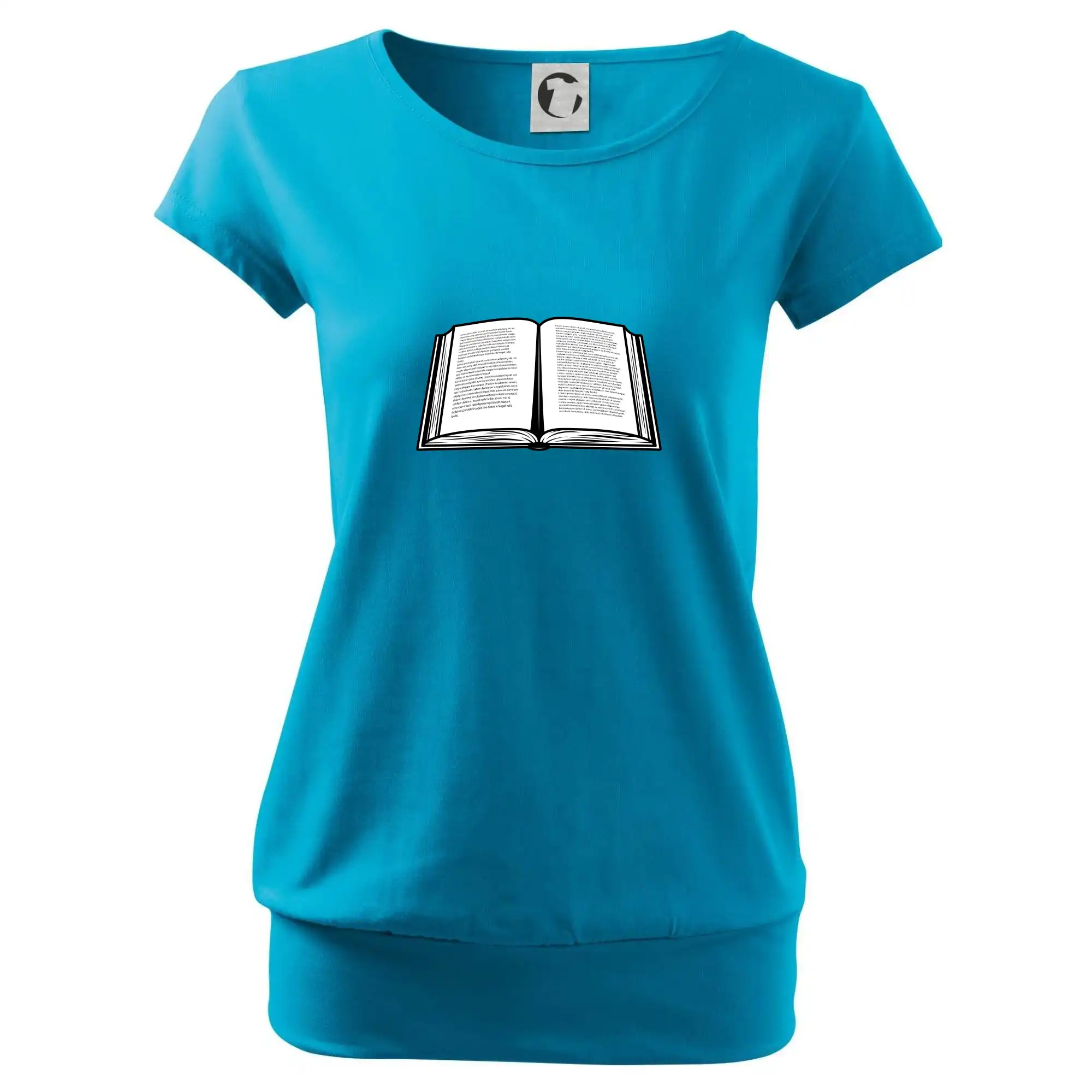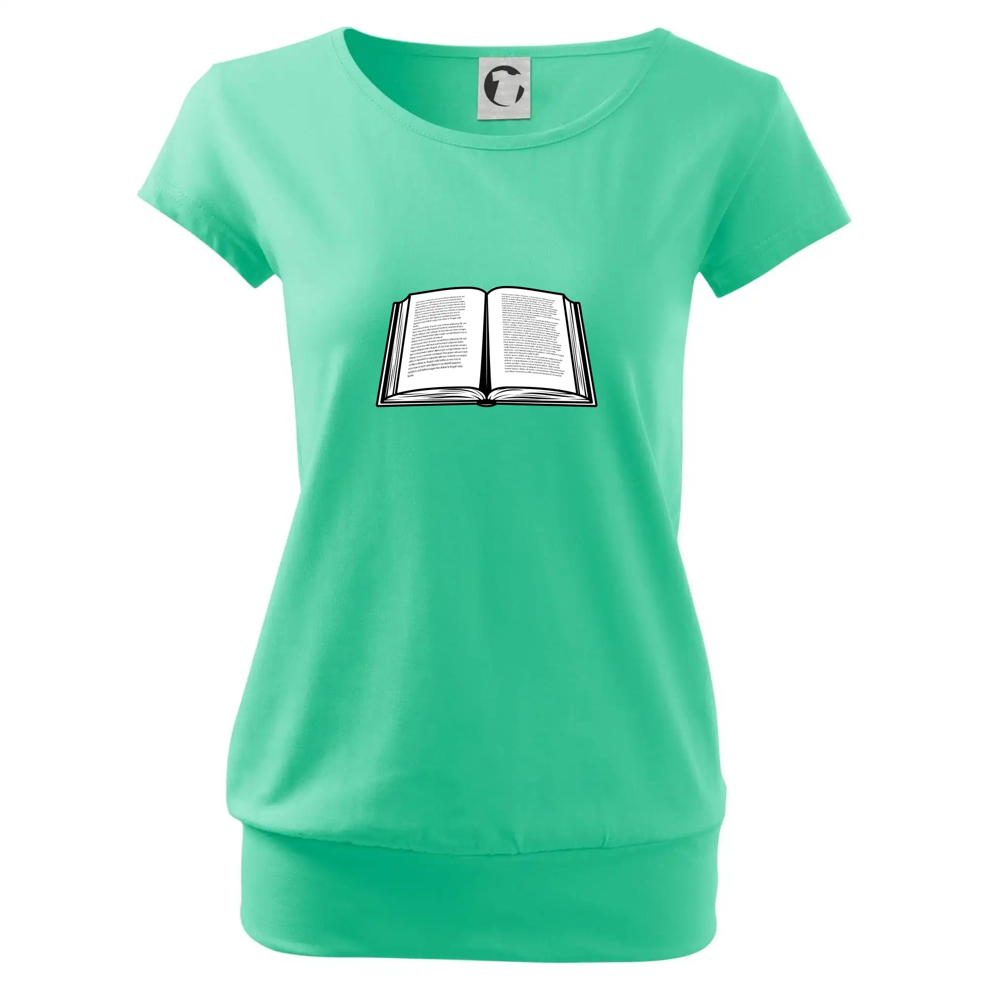 Trendové dámske tričko s veľmi krátkym rukávom, voľnejšieho strihu, v dolnom kraji všité do širokého lemu. Okrúhly priekrčník s úzkym lemom zo zhodného materiálu.