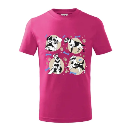 Detské tričko strednej gramáže s bočnými švami. Úzky priekrčník s prídavkom 5% elastanu. Vnútorná časť zadného priekrčníka začistená tkanou páskou. Spevnený ramenný šev.