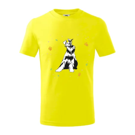 Detské tričko strednej gramáže s bočnými švami. Úzky priekrčník s prídavkom 5% elastanu. Vnútorná časť zadného priekrčníka začistená tkanou páskou. Spevnený ramenný šev.