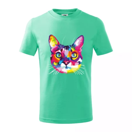 Mačka plná farieb a radosti, teraz na Tvojom tričku. U nás na Myshirt si vyberie naozaj každý.
