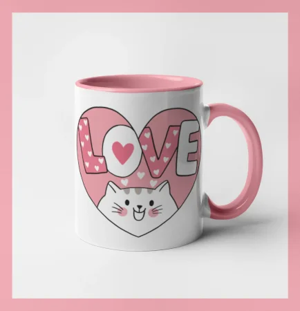 Mačka love - ružové srdce