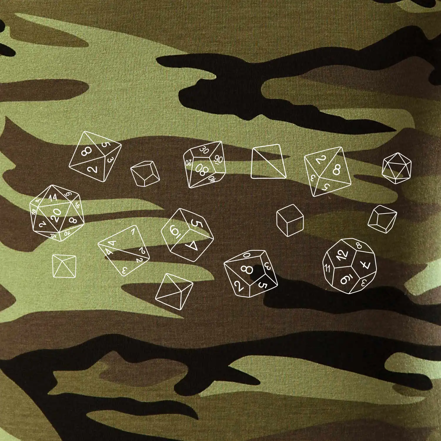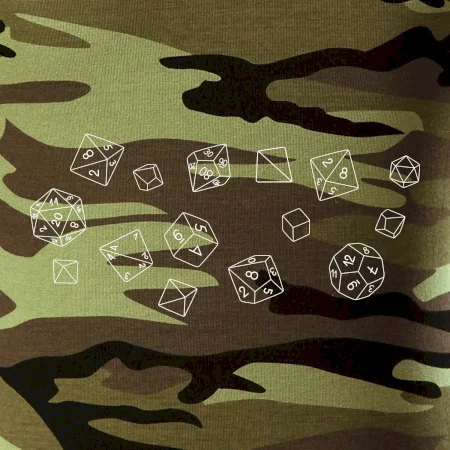 Tričko strednej gramáže vo farbách camouflage. Strih s bočnými švami. Lem priekrčníku z rebrového úpletu s prídavkom 5% elastanu. Vnútorná časť zadného priekrčníka začistená páskou vo farbe camouflage.