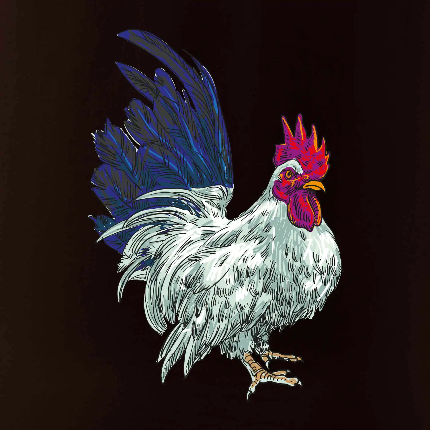 Kohút kreslený biely