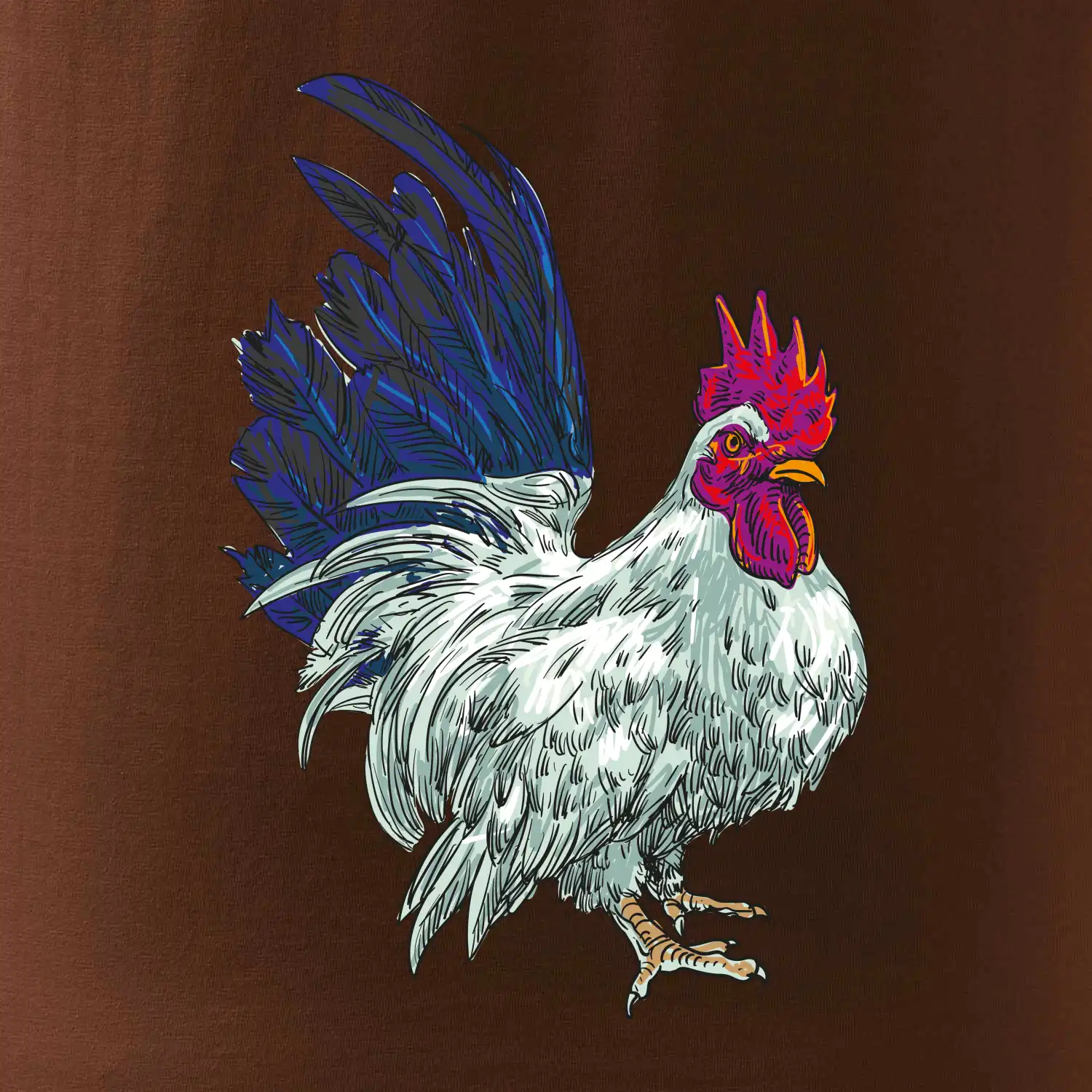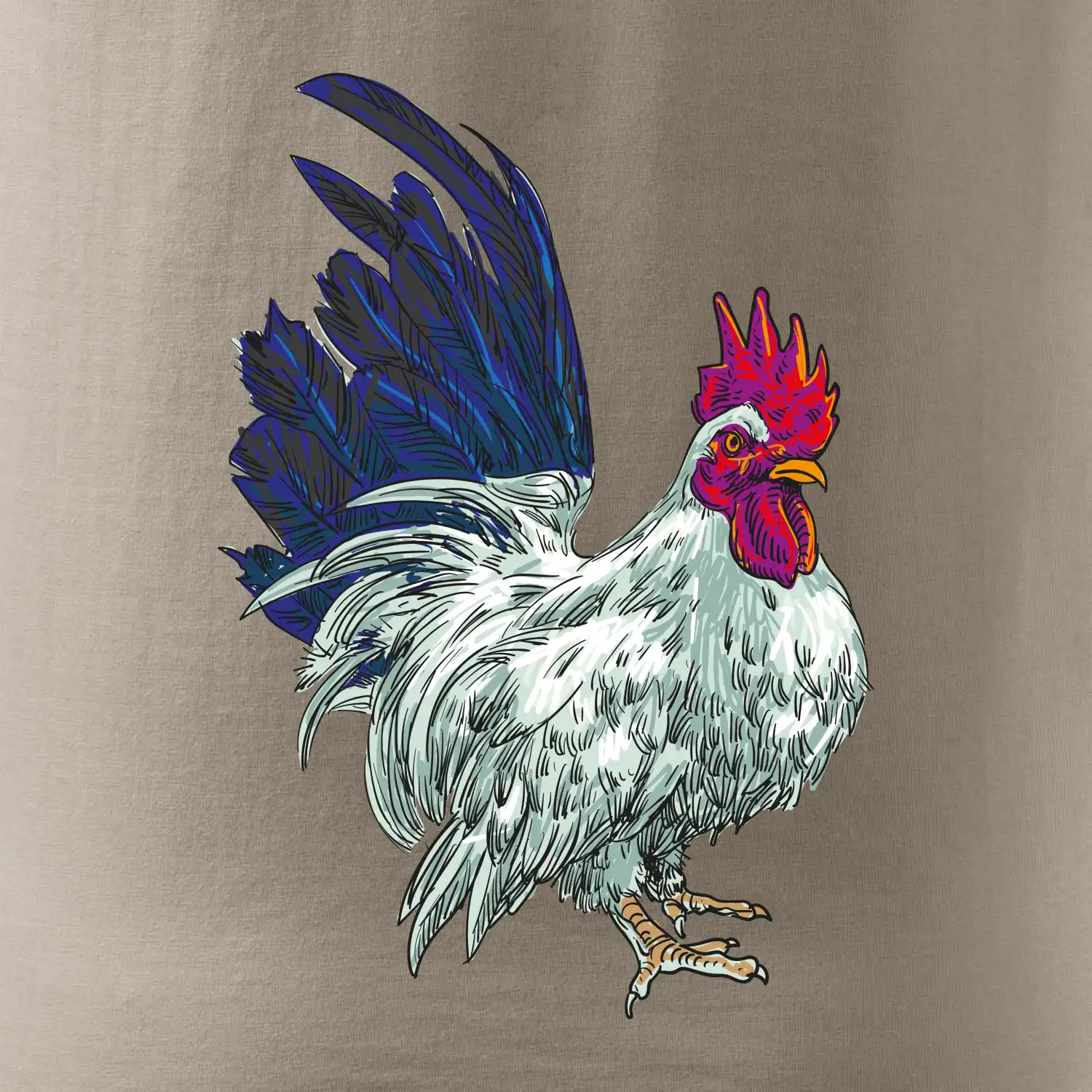 Kohút kreslený biely