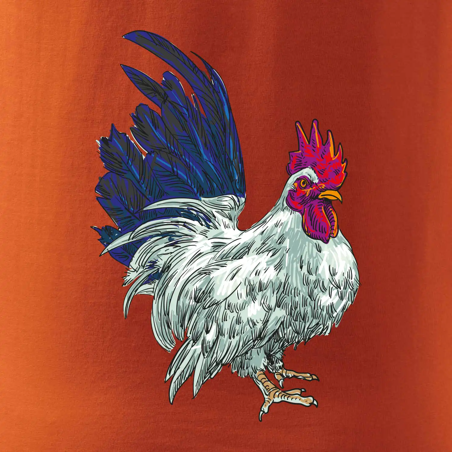 Kohút kreslený biely