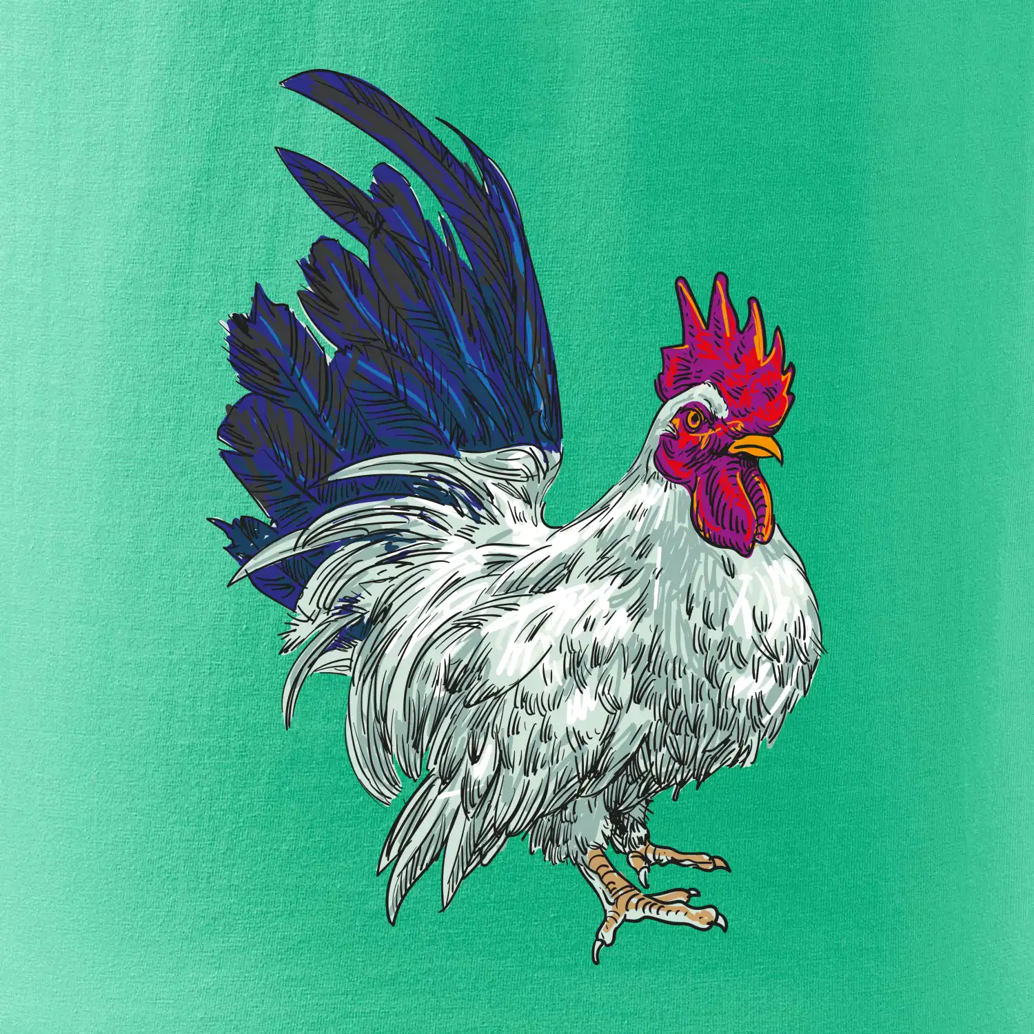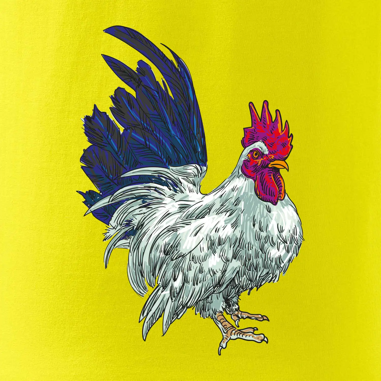 Kohút kreslený biely