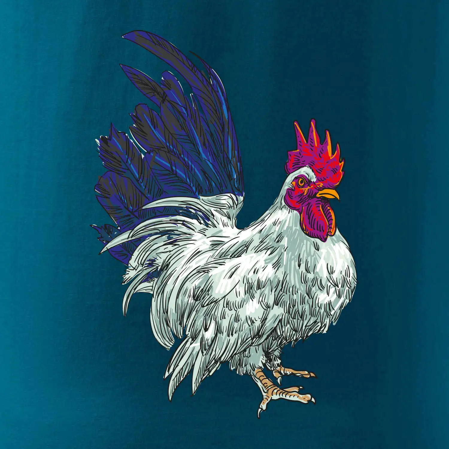 Kohút kreslený biely