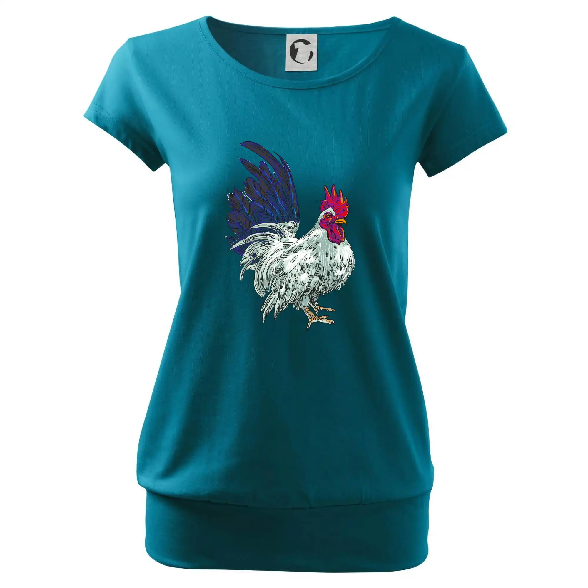 Trendové dámske tričko s veľmi krátkym rukávom, voľnejšieho strihu, v dolnom kraji všité do širokého lemu. Okrúhly priekrčník s úzkym lemom zo zhodného materiálu.