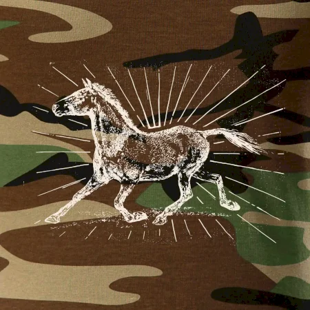 Tričko strednej gramáže vo farbách camouflage. Strih s bočnými švami. Lem priekrčníku z rebrového úpletu s prídavkom 5% elastanu. Vnútorná časť zadného priekrčníka začistená páskou vo farbe camouflage.