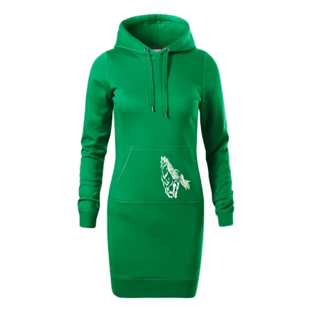 Dámske mikinové šaty MALFINI Snap 419 sú ideálnou voľbou pre ženy, ktoré hľadajú pohodlný a štýlový kúsok na voľný čas alebo každodenné nosenie. Ľahko vypasovaný strih s bočnými švami podčiarkuje ženskú siluetu, zatiaľ čo kapucňa s podšívkou a sťahovacou šnúrkou dodáva ležérny vzhľad. Šaty majú dĺžku nad kolená a sú vybavené našitým vreckom v štýle „klokanky“. Materiál je mäkký a príjemný na dotyk grâce à smesi bavlny a polyesteru s nepočesanou vnútornou stranou.