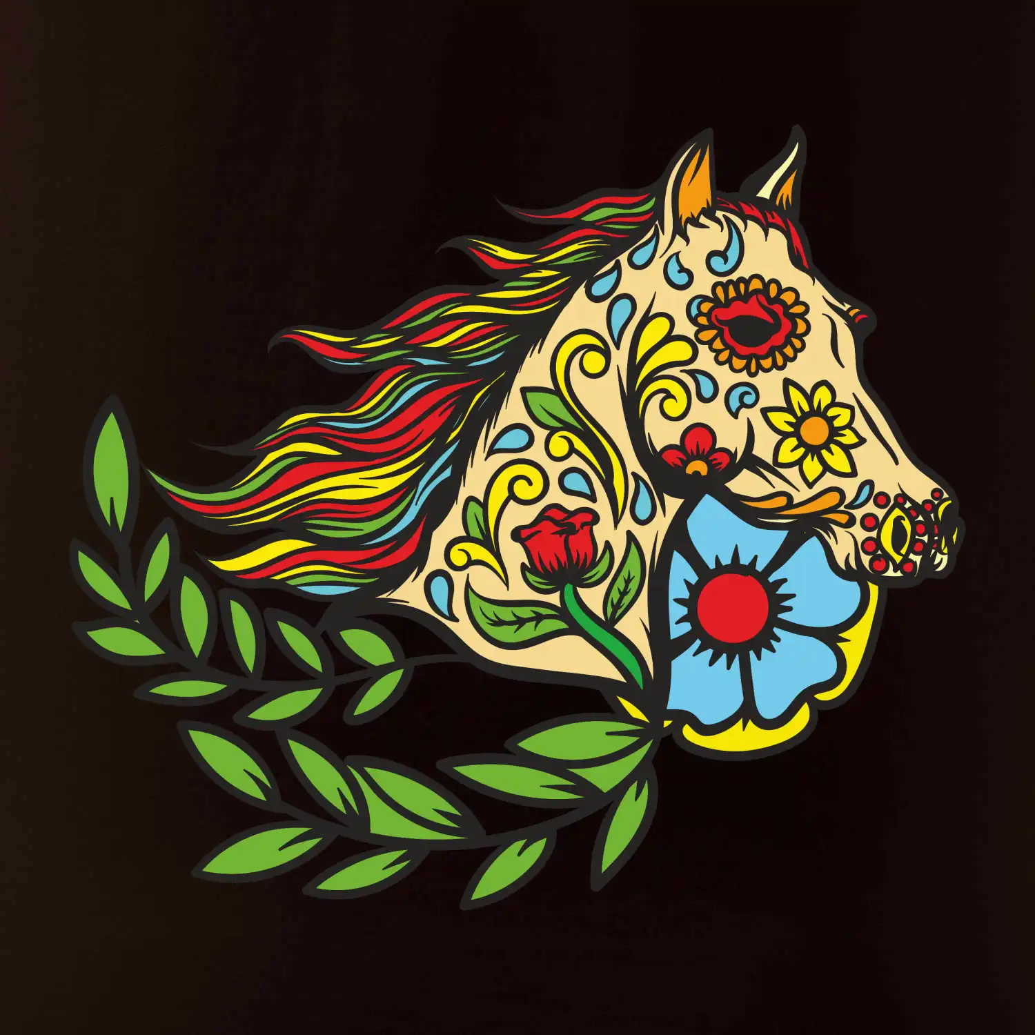 Kôň farebný s listami