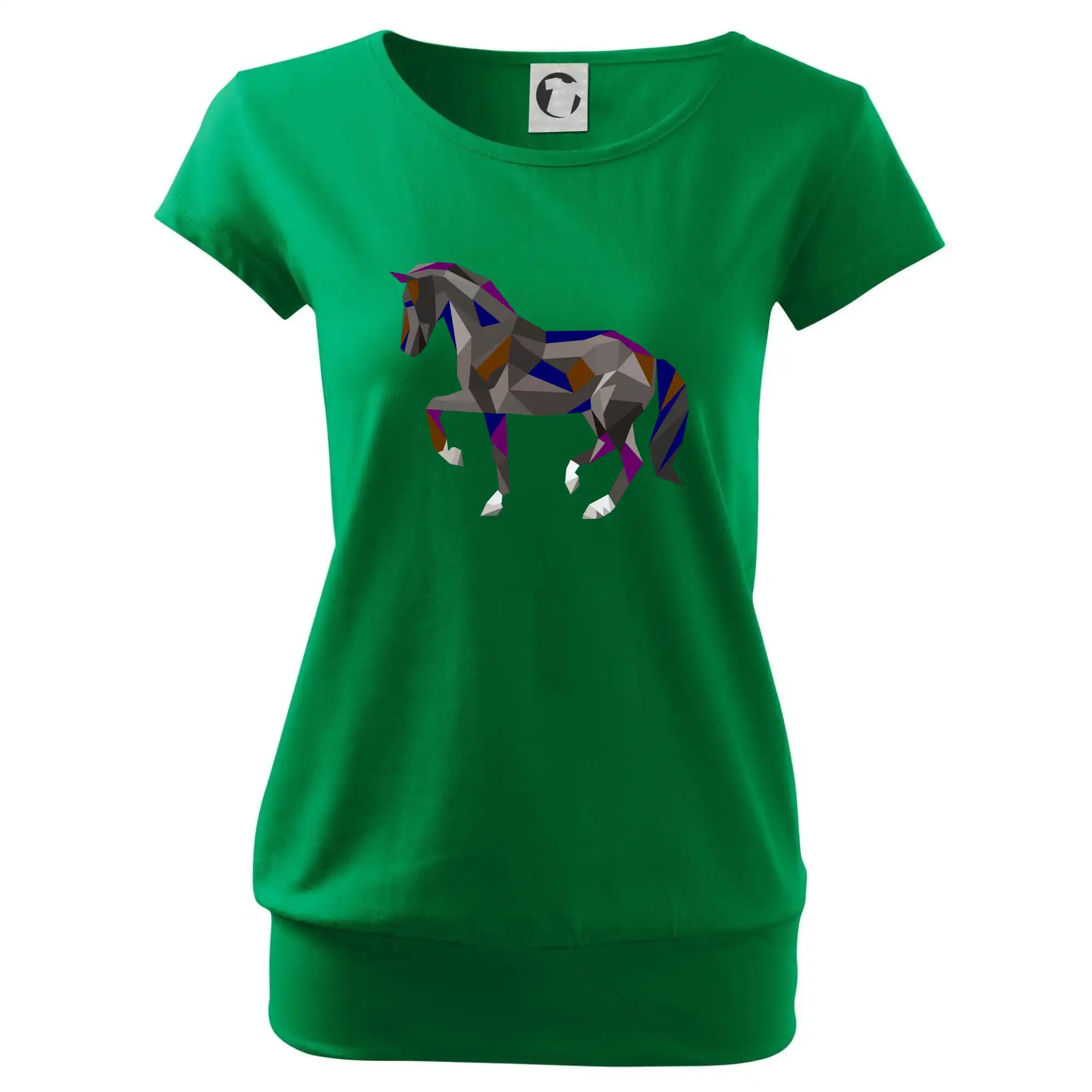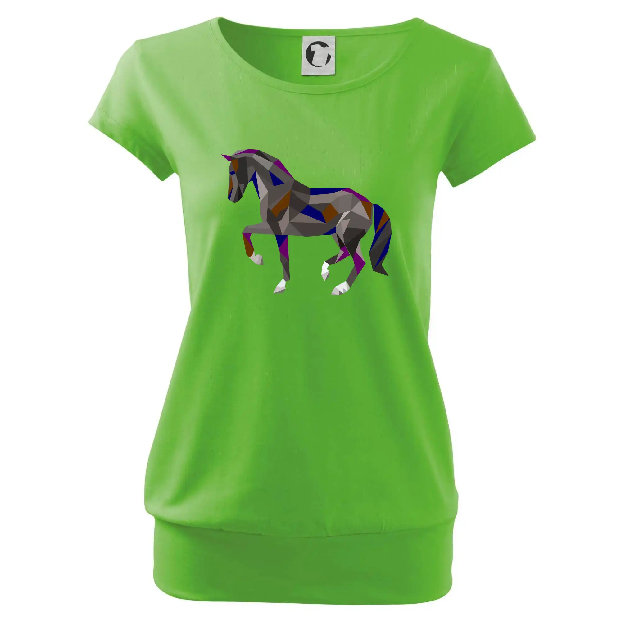 Trendové dámske tričko s veľmi krátkym rukávom, voľnejšieho strihu, v dolnom kraji všité do širokého lemu. Okrúhly priekrčník s úzkym lemom zo zhodného materiálu.