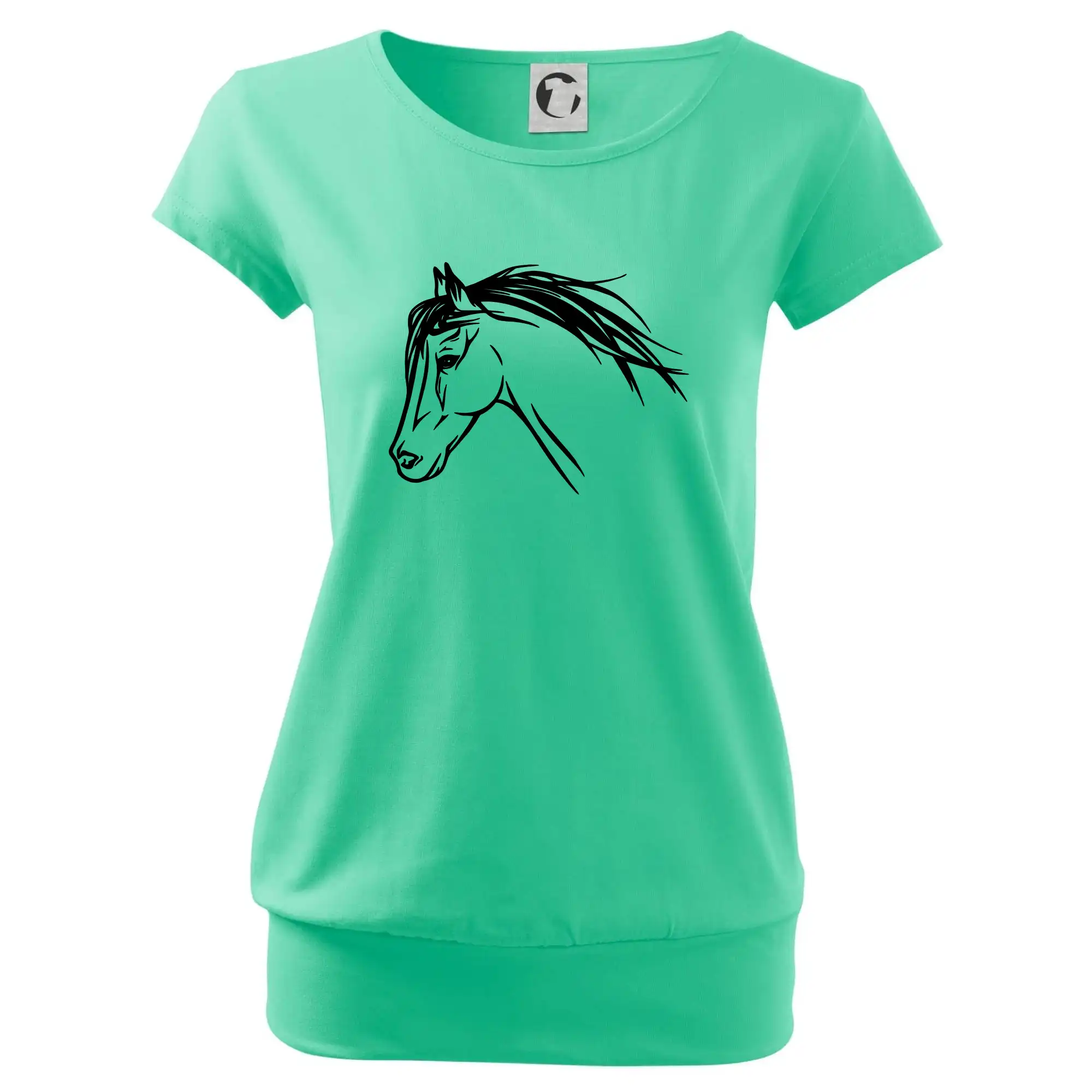 Trendové dámske tričko s veľmi krátkym rukávom, voľnejšieho strihu, v dolnom kraji všité do širokého lemu. Okrúhly priekrčník s úzkym lemom zo zhodného materiálu.