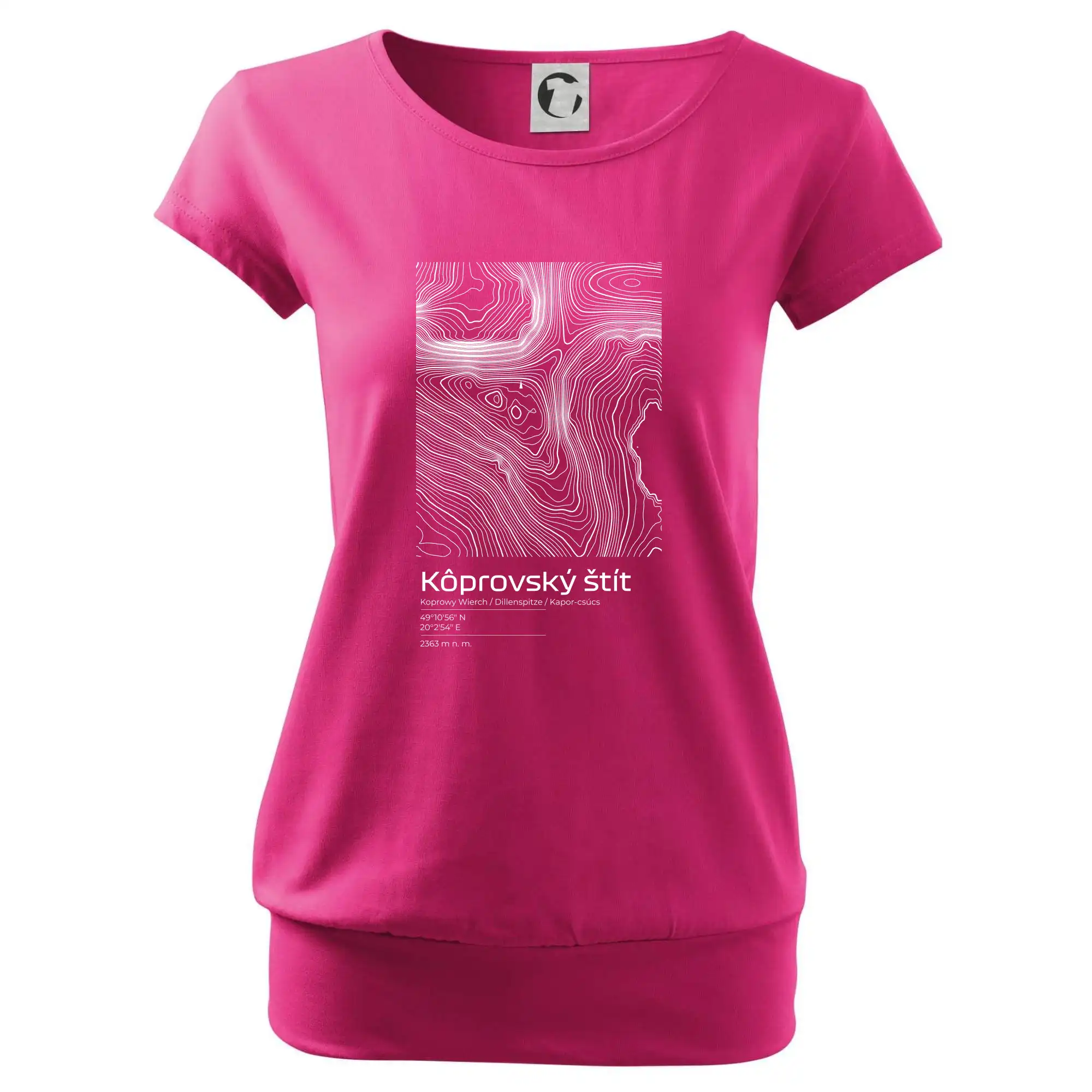 Trendové dámske tričko s veľmi krátkym rukávom, voľnejšieho strihu, v dolnom kraji všité do širokého lemu. Okrúhly priekrčník s úzkym lemom zo zhodného materiálu.