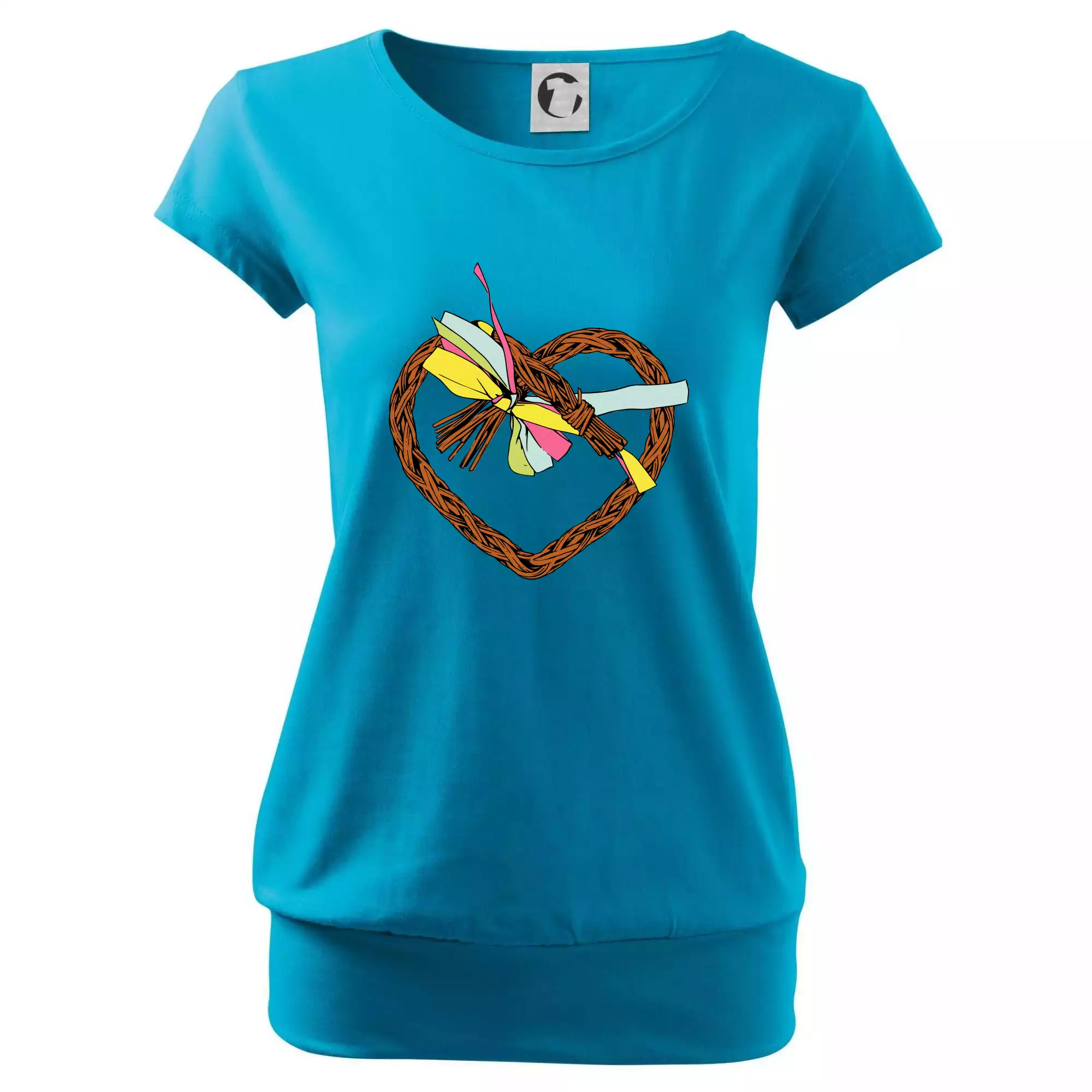 Trendové dámske tričko s veľmi krátkym rukávom, voľnejšieho strihu, v dolnom kraji všité do širokého lemu. Okrúhly priekrčník s úzkym lemom zo zhodného materiálu.