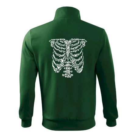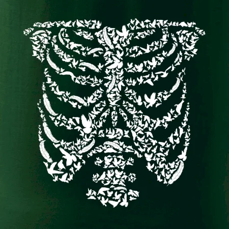 Umělecká kombinace ptáčků a kostry na triku.