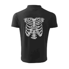 Umělecká kombinace ptáčků a kostry na triku.