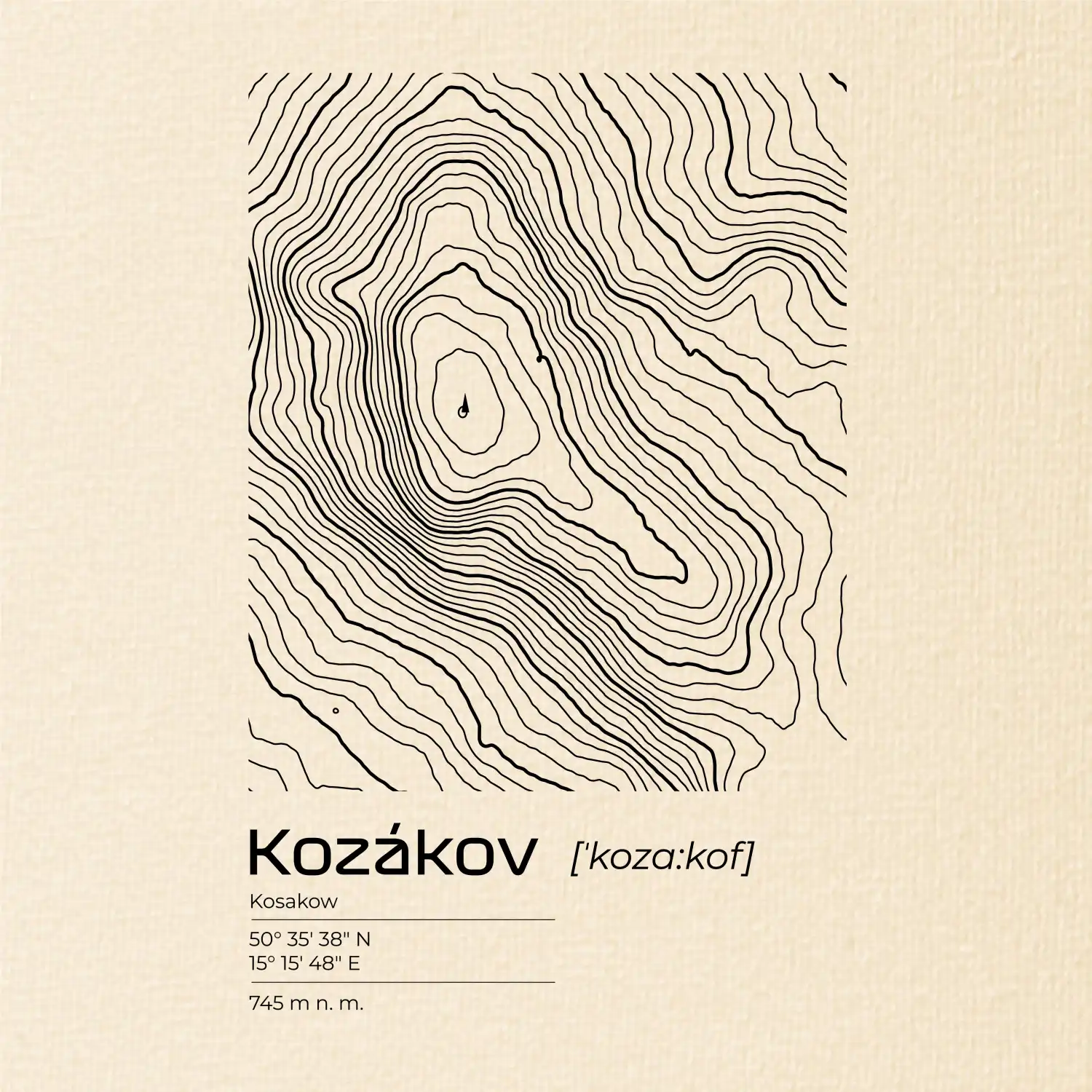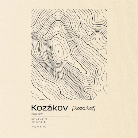 Kozákov - vrstevnice v obdĺžniku