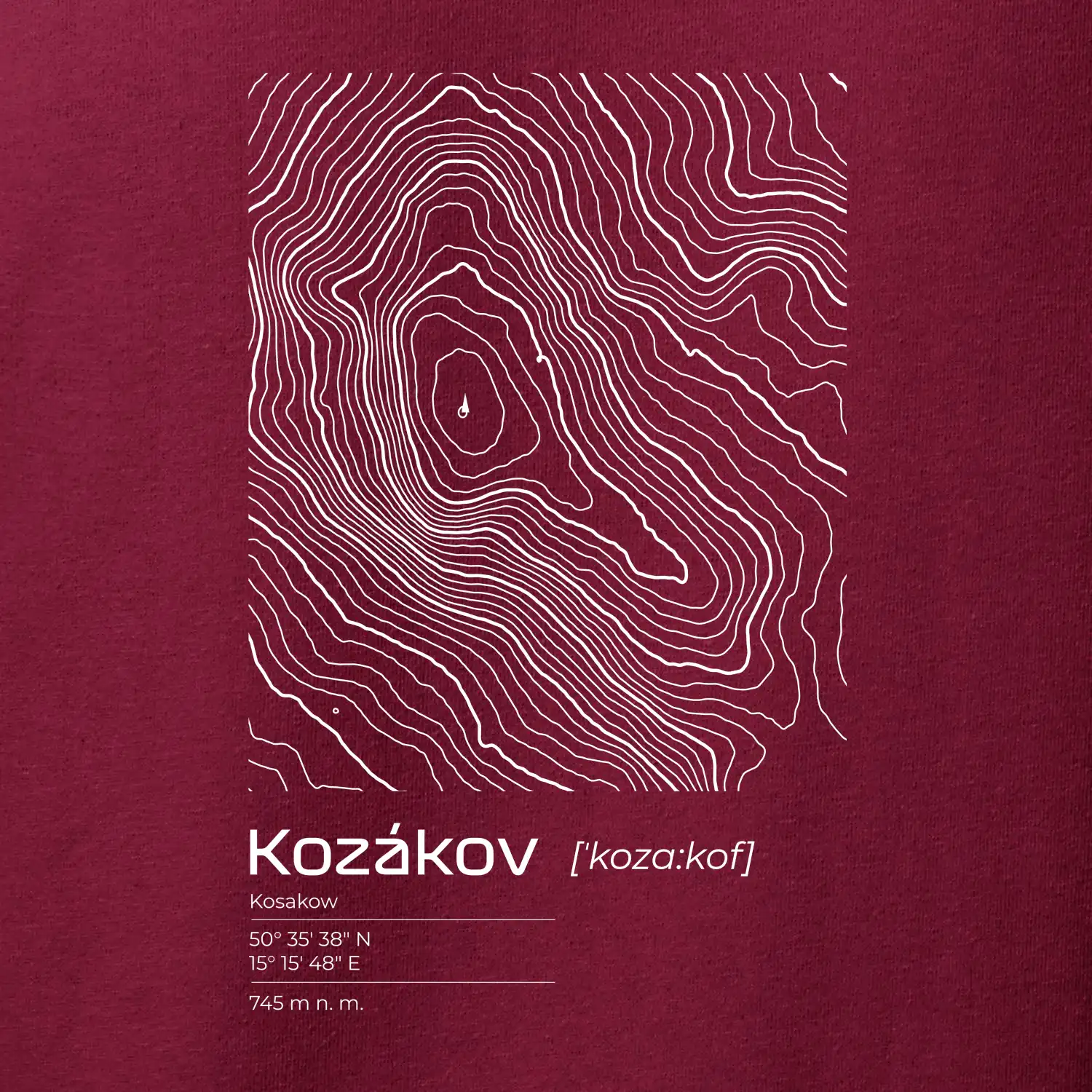 Kozákov - vrstevnice v obdĺžniku