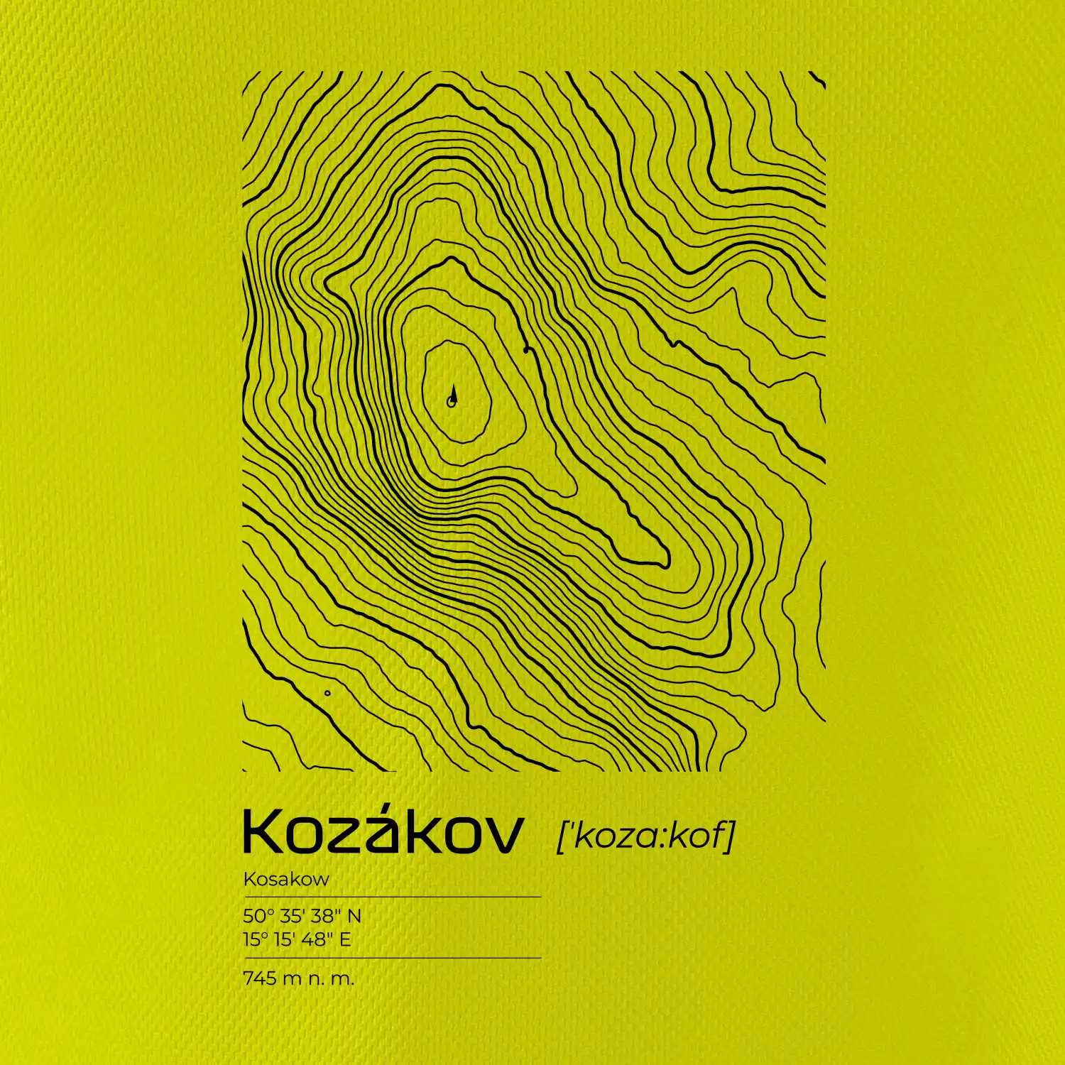 Kozákov - vrstevnice v obdĺžniku