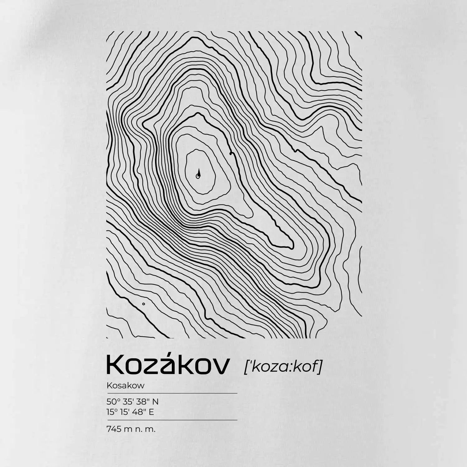 Kozákov - vrstevnice v obdĺžniku