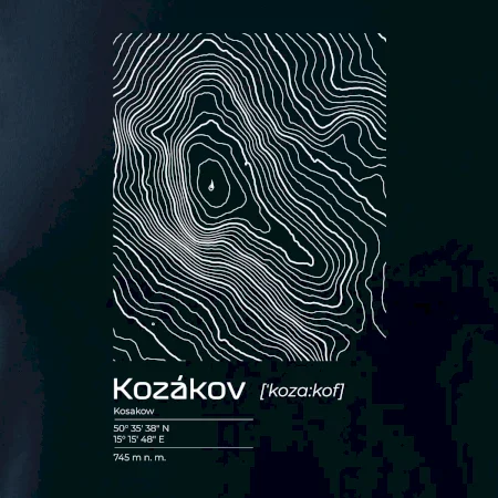 Kozákov - vrstevnice v obdĺžniku