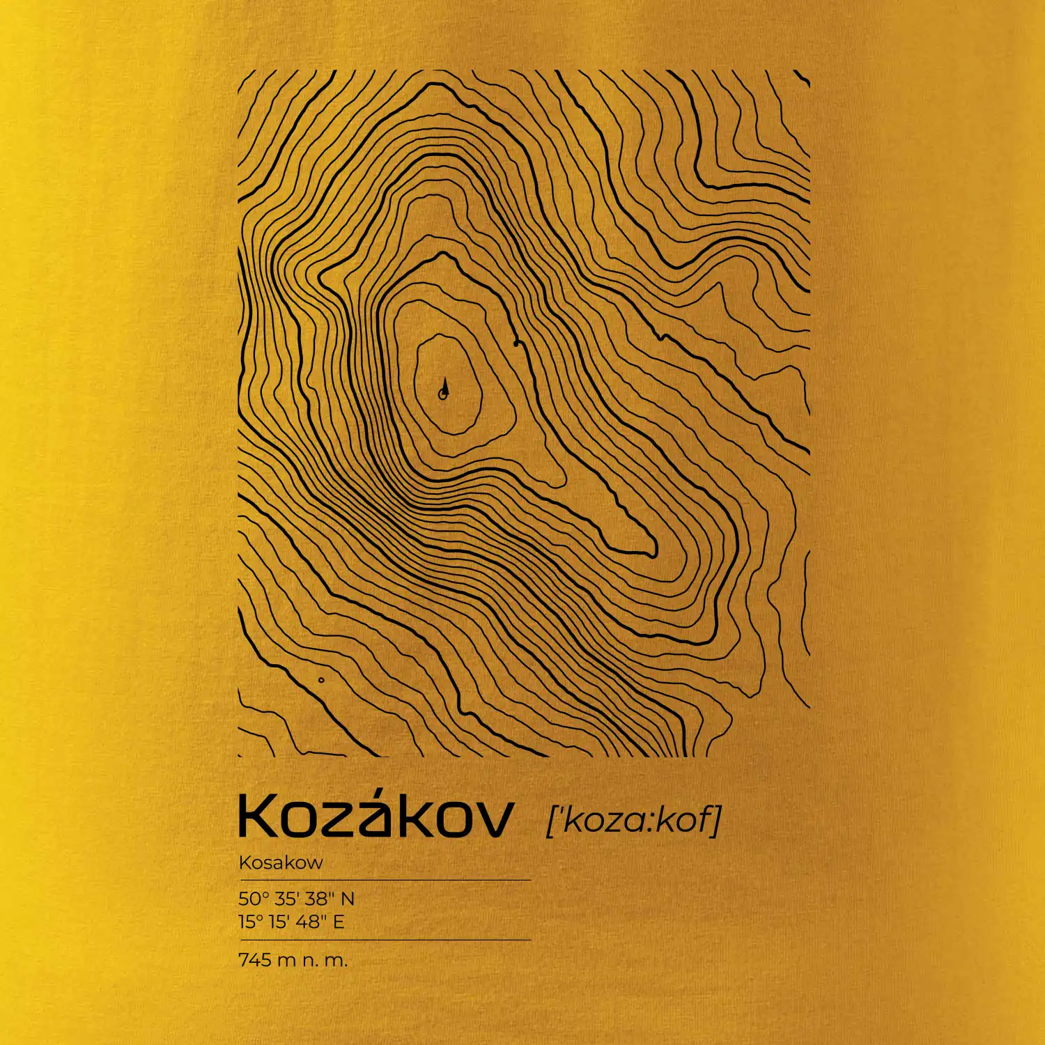 Kozákov - vrstevnice v obdĺžniku