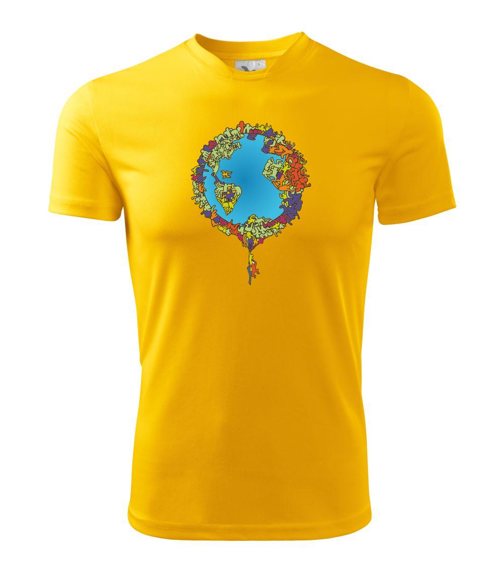 Tričko so zemeguľou, na ktorej sú ľudské postavičky poukazuje a problémy ako rýchly rast populácie a preľudnenosť. Panáčikovia sa na Zemi tlačia na hromadu, niektorí sa už nezmestia a padajú. Planéta plná postavičiek v tvare svetadielov ukazuje, že zemeguľa nie je nafukovacia.