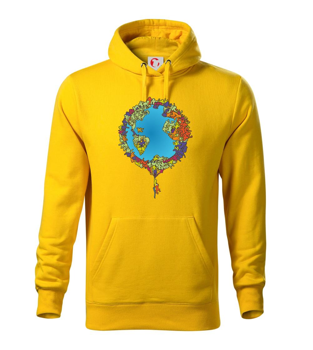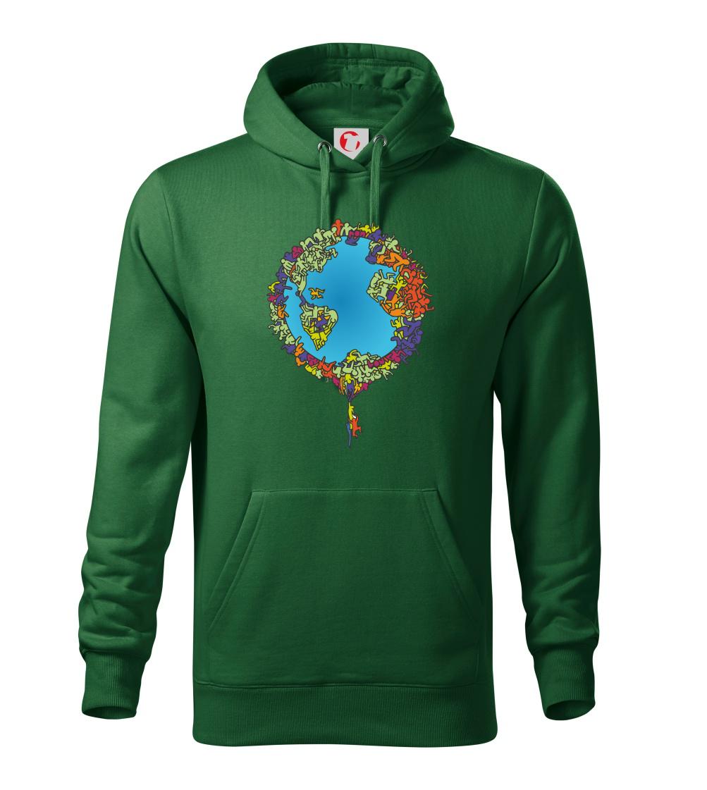 Tričko so zemeguľou, na ktorej sú ľudské postavičky poukazuje a problémy ako rýchly rast populácie a preľudnenosť. Panáčikovia sa na Zemi tlačia na hromadu, niektorí sa už nezmestia a padajú. Planéta plná postavičiek v tvare svetadielov ukazuje, že zemeguľa nie je nafukovacia.