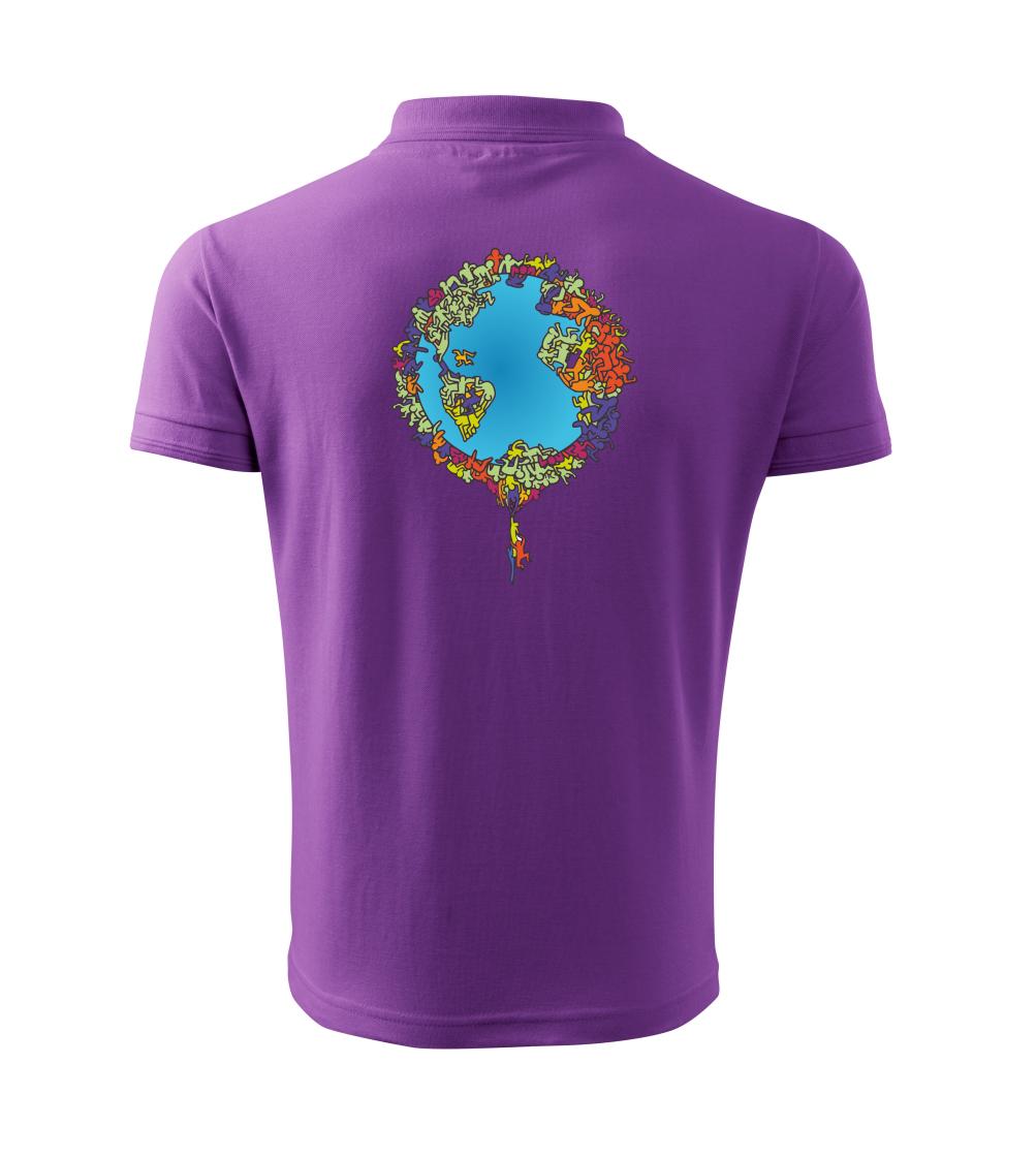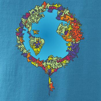 Tričko so zemeguľou, na ktorej sú ľudské postavičky poukazuje a problémy ako rýchly rast populácie a preľudnenosť. Panáčikovia sa na Zemi tlačia na hromadu, niektorí sa už nezmestia a padajú. Planéta plná postavičiek v tvare svetadielov ukazuje, že zemeguľa nie je nafukovacia.