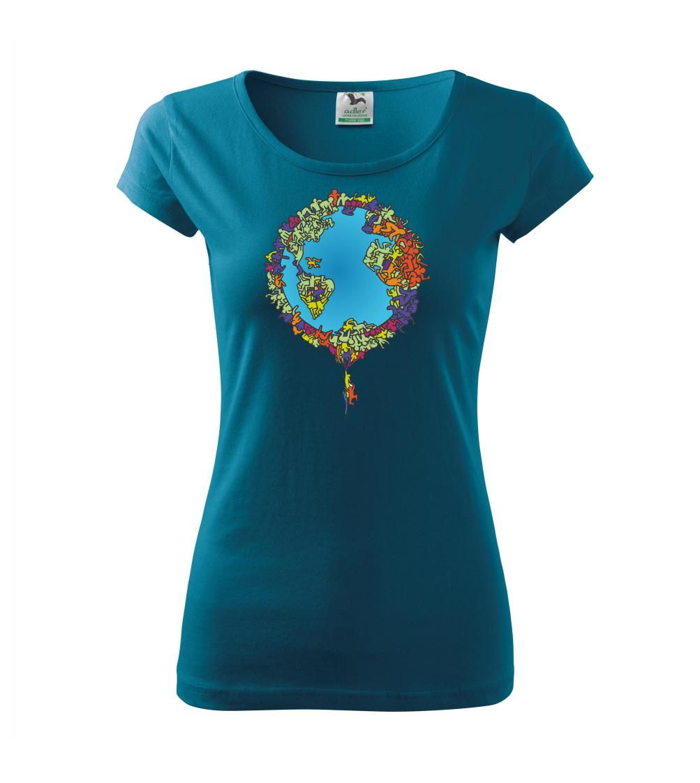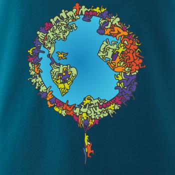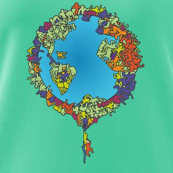 Tričko so zemeguľou, na ktorej sú ľudské postavičky poukazuje a problémy ako rýchly rast populácie a preľudnenosť. Panáčikovia sa na Zemi tlačia na hromadu, niektorí sa už nezmestia a padajú. Planéta plná postavičiek v tvare svetadielov ukazuje, že zemeguľa nie je nafukovacia.