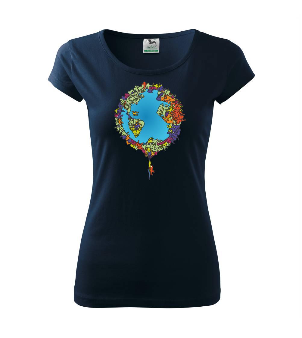 Tričko so zemeguľou, na ktorej sú ľudské postavičky poukazuje a problémy ako rýchly rast populácie a preľudnenosť. Panáčikovia sa na Zemi tlačia na hromadu, niektorí sa už nezmestia a padajú. Planéta plná postavičiek v tvare svetadielov ukazuje, že zemeguľa nie je nafukovacia.