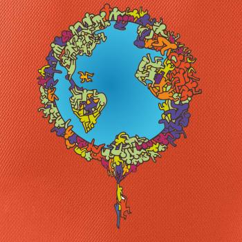 Tričko so zemeguľou, na ktorej sú ľudské postavičky poukazuje a problémy ako rýchly rast populácie a preľudnenosť. Panáčikovia sa na Zemi tlačia na hromadu, niektorí sa už nezmestia a padajú. Planéta plná postavičiek v tvare svetadielov ukazuje, že zemeguľa nie je nafukovacia.