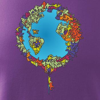 Tričko so zemeguľou, na ktorej sú ľudské postavičky poukazuje a problémy ako rýchly rast populácie a preľudnenosť. Panáčikovia sa na Zemi tlačia na hromadu, niektorí sa už nezmestia a padajú. Planéta plná postavičiek v tvare svetadielov ukazuje, že zemeguľa nie je nafukovacia.