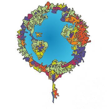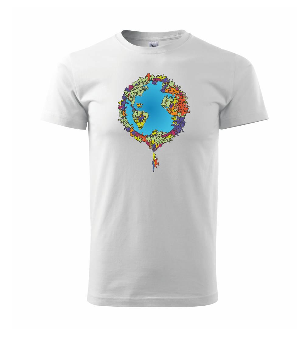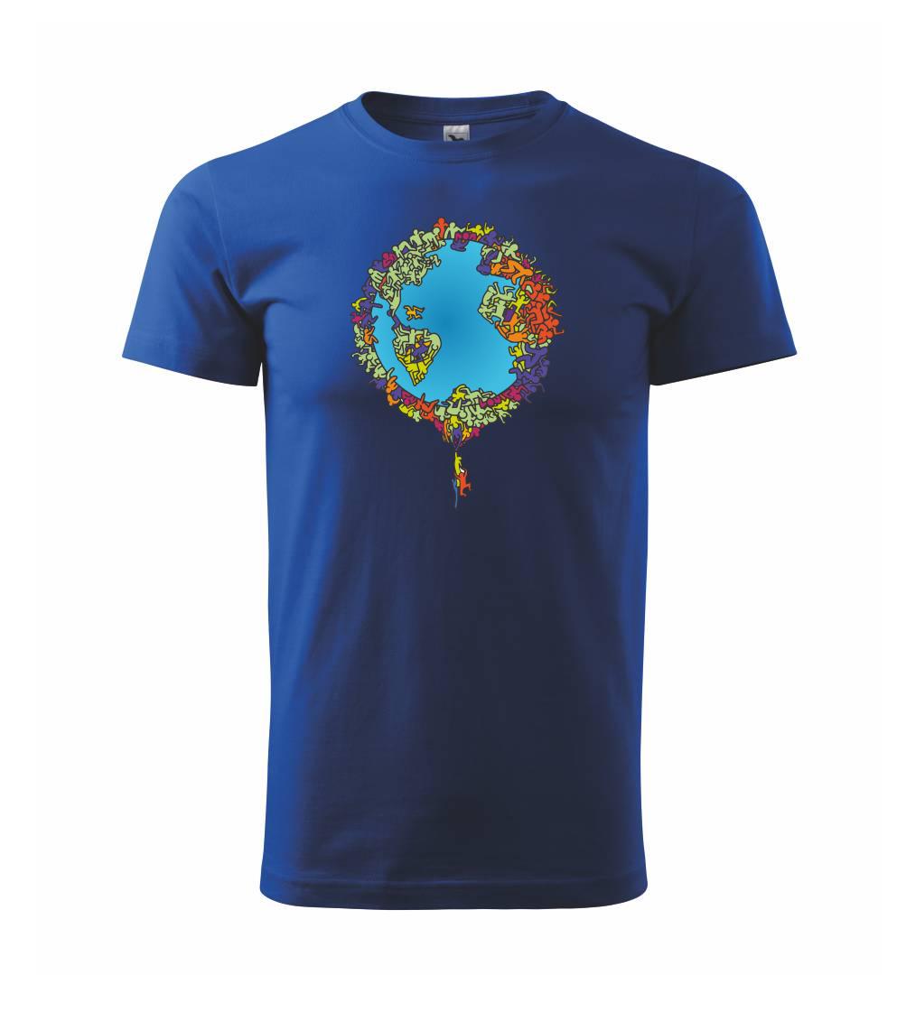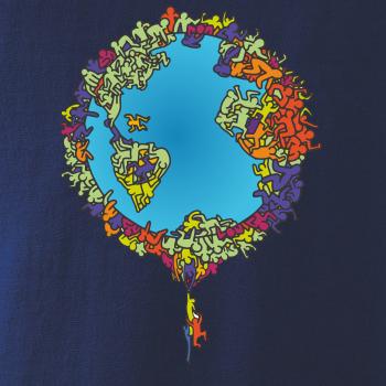 Tričko so zemeguľou, na ktorej sú ľudské postavičky poukazuje a problémy ako rýchly rast populácie a preľudnenosť. Panáčikovia sa na Zemi tlačia na hromadu, niektorí sa už nezmestia a padajú. Planéta plná postavičiek v tvare svetadielov ukazuje, že zemeguľa nie je nafukovacia.