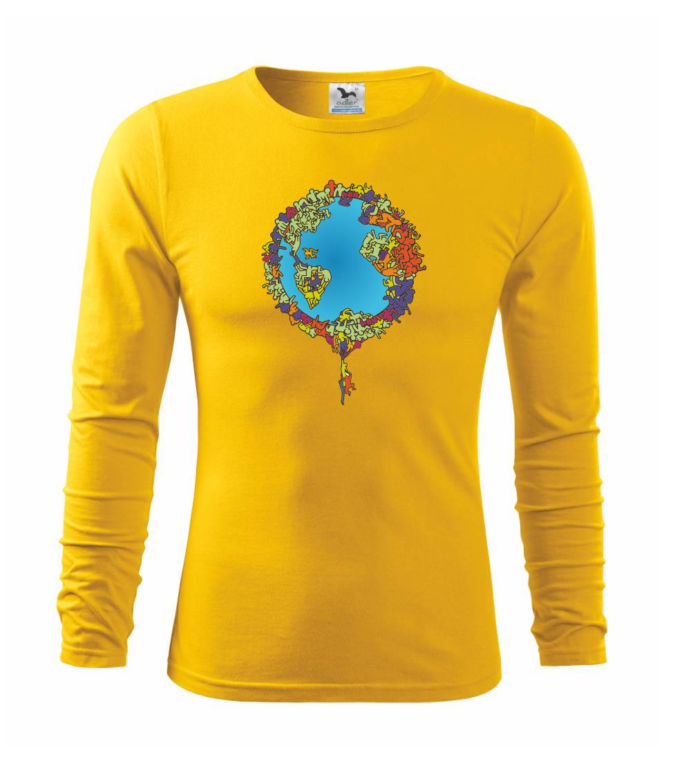 Tričko so zemeguľou, na ktorej sú ľudské postavičky poukazuje a problémy ako rýchly rast populácie a preľudnenosť. Panáčikovia sa na Zemi tlačia na hromadu, niektorí sa už nezmestia a padajú. Planéta plná postavičiek v tvare svetadielov ukazuje, že zemeguľa nie je nafukovacia.
