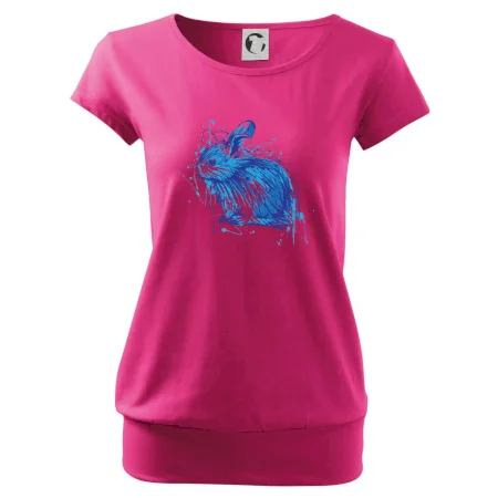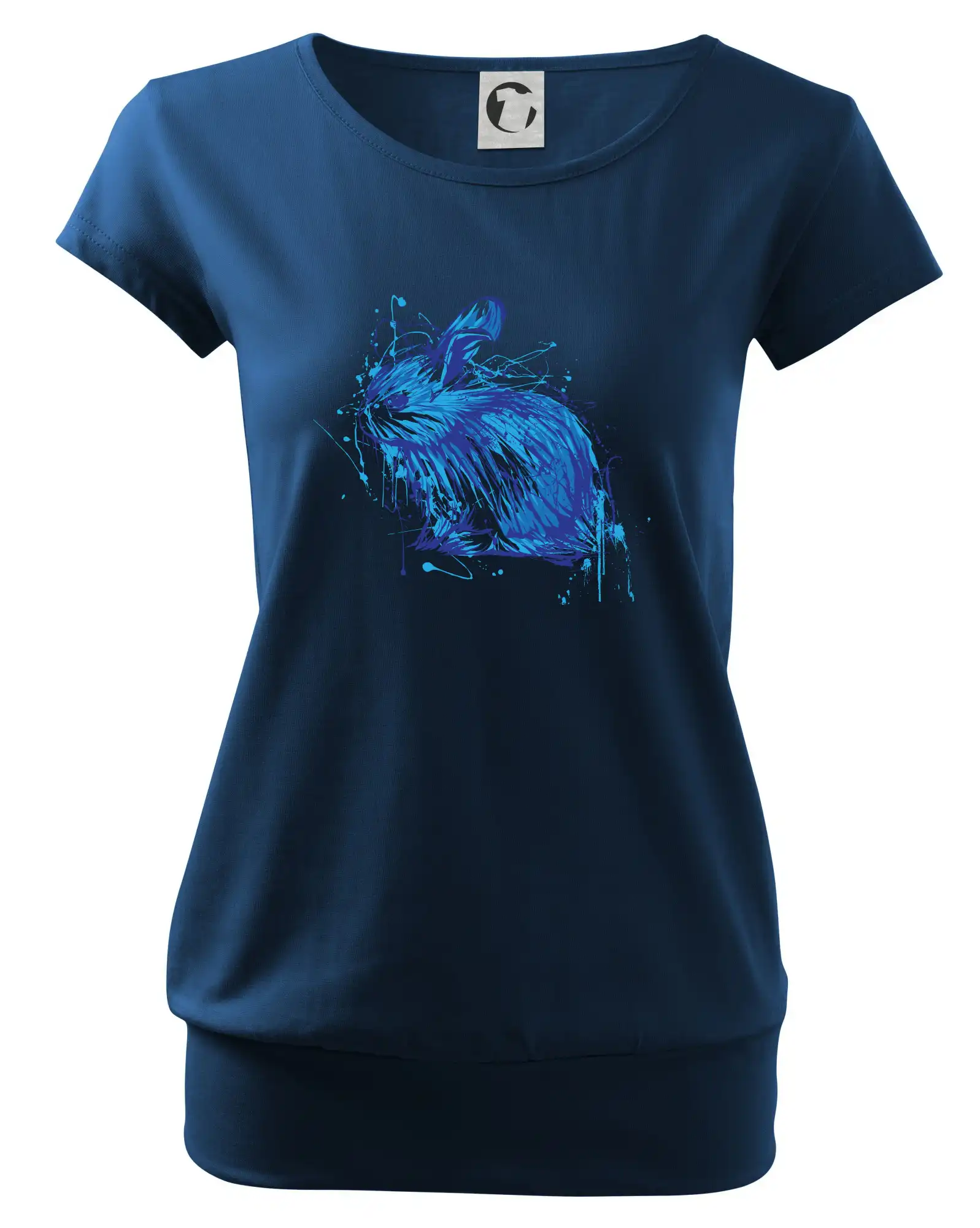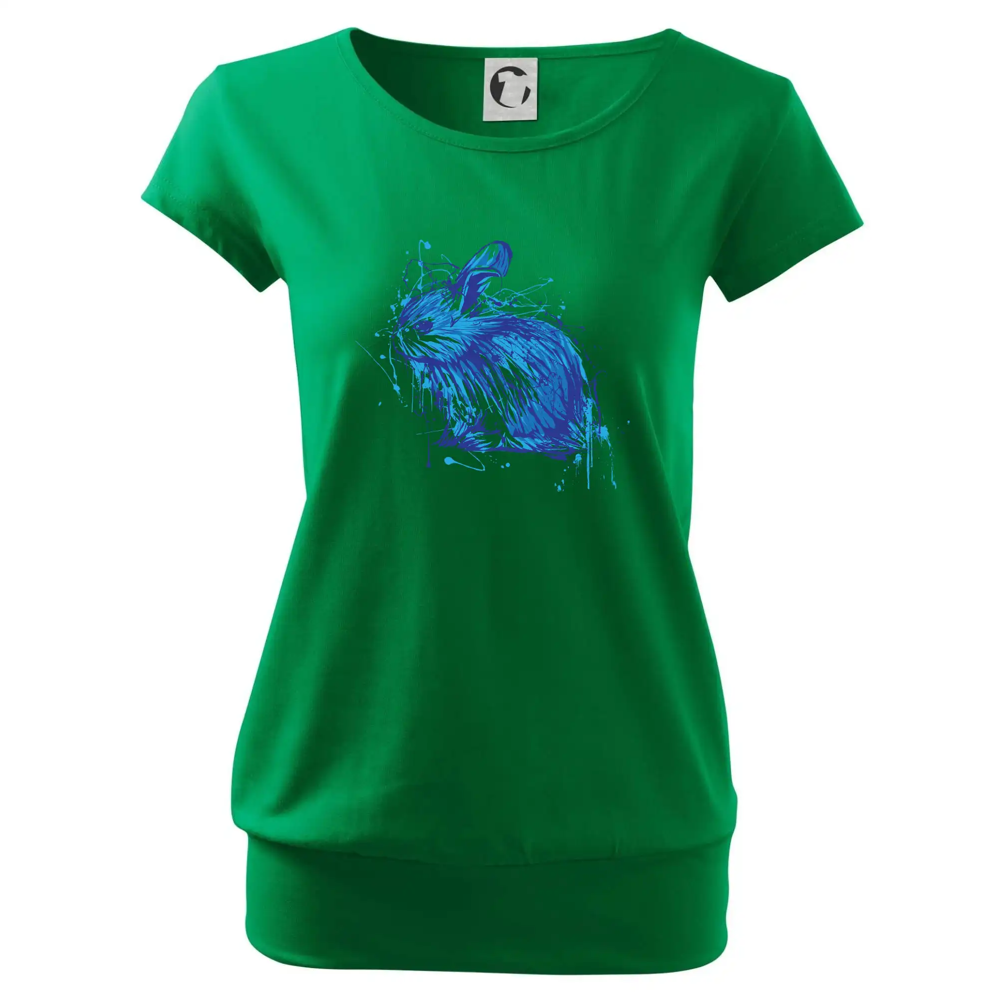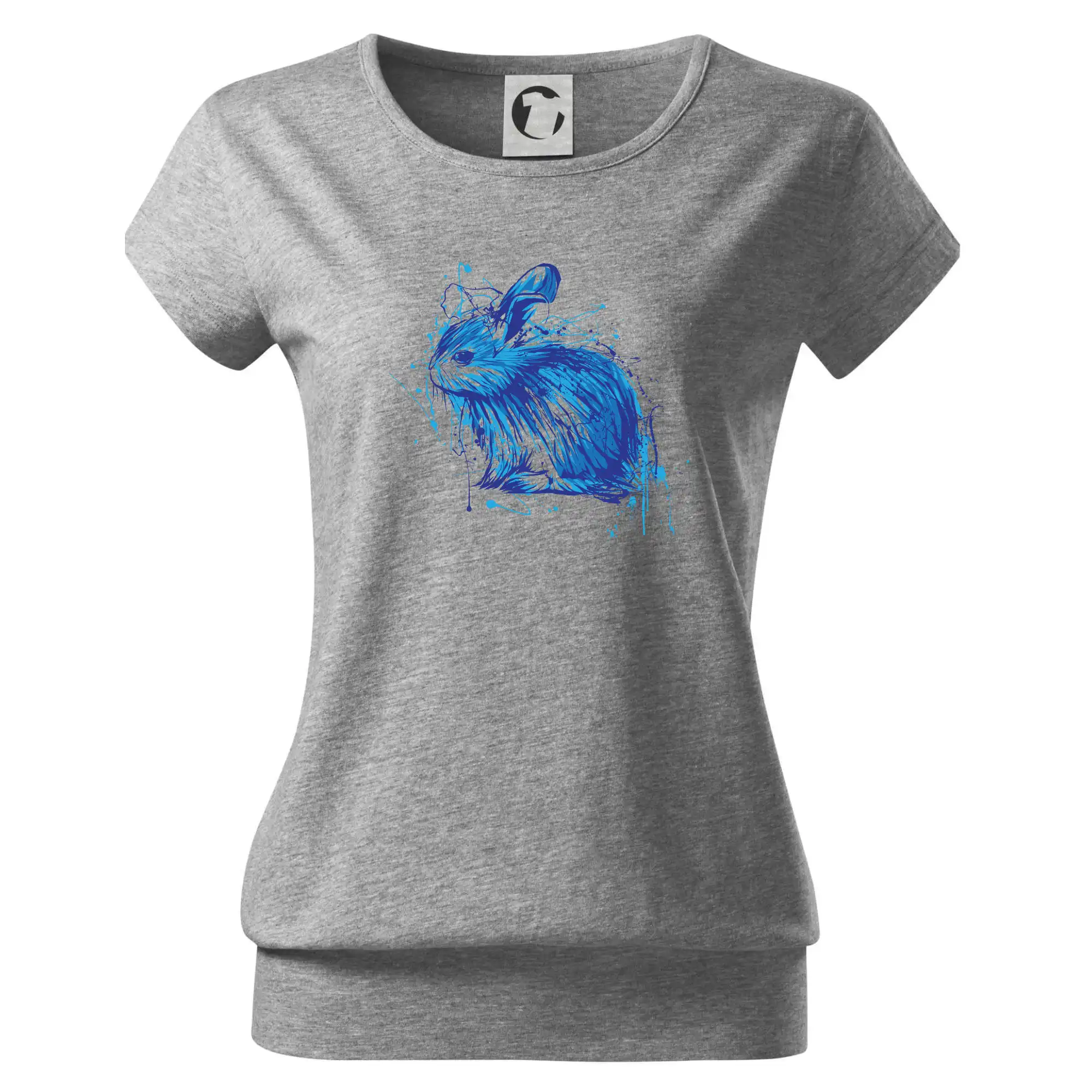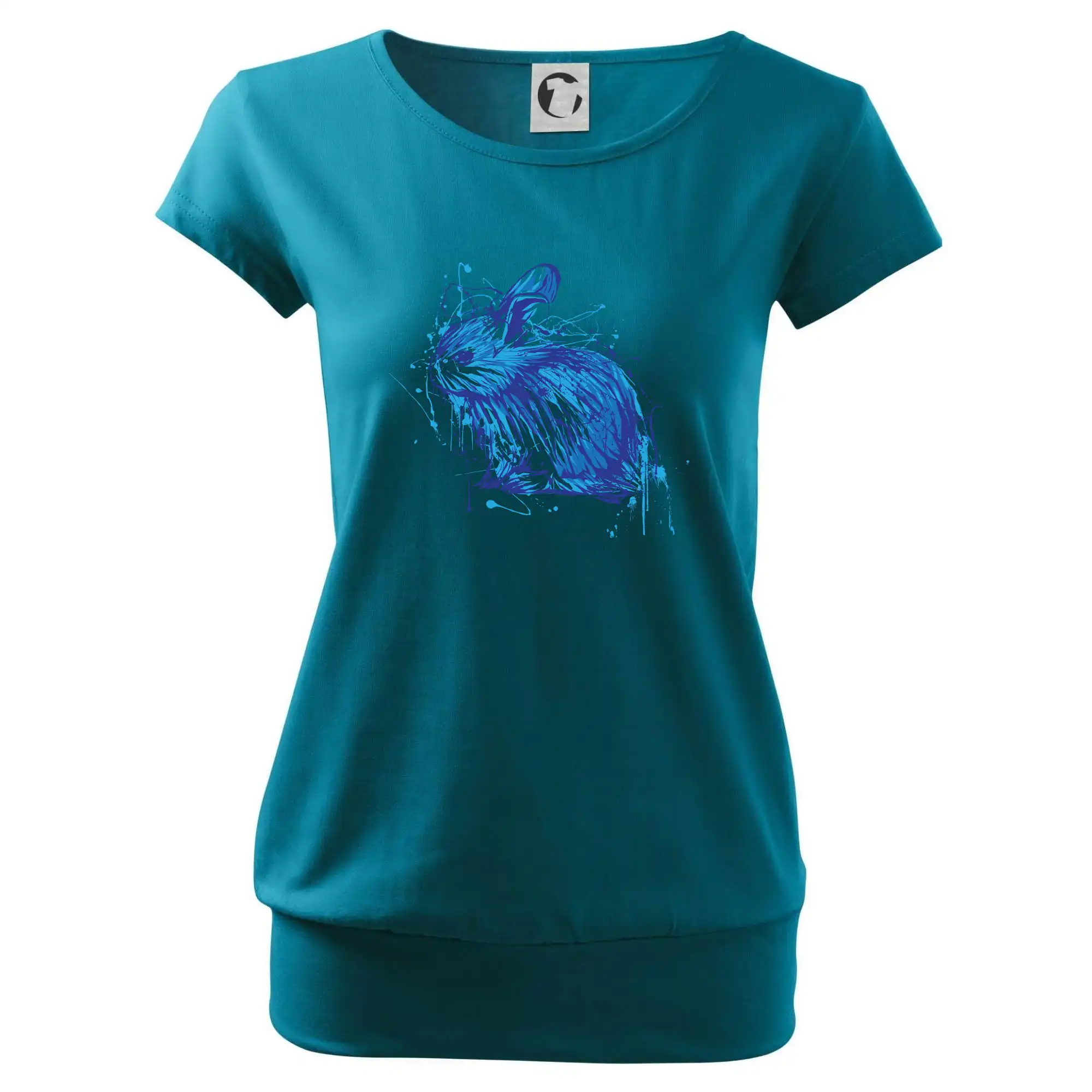 Trendové dámske tričko s veľmi krátkym rukávom, voľnejšieho strihu, v dolnom kraji všité do širokého lemu. Okrúhly priekrčník s úzkym lemom zo zhodného materiálu.