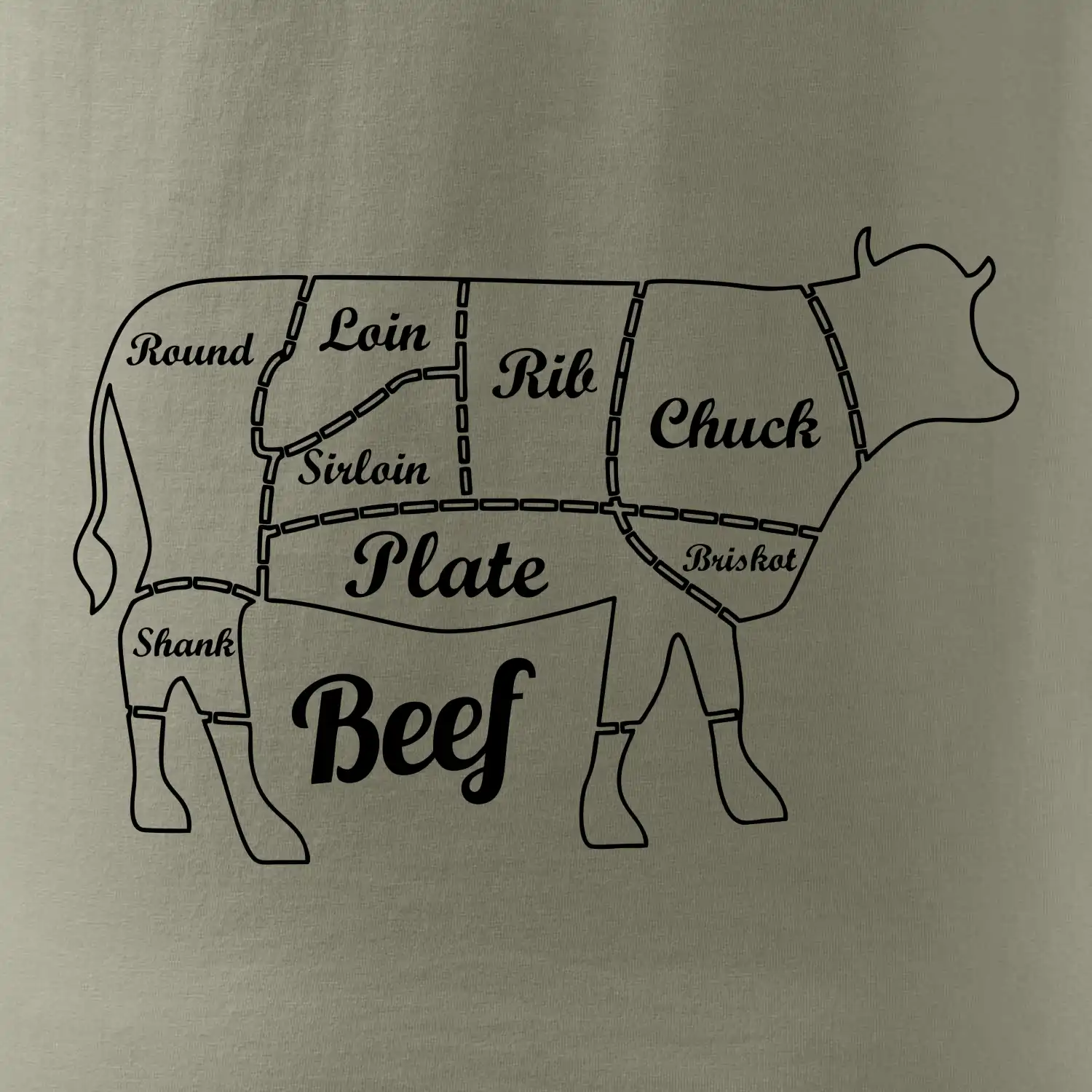 Krava nákres rozrezanie Anglicky