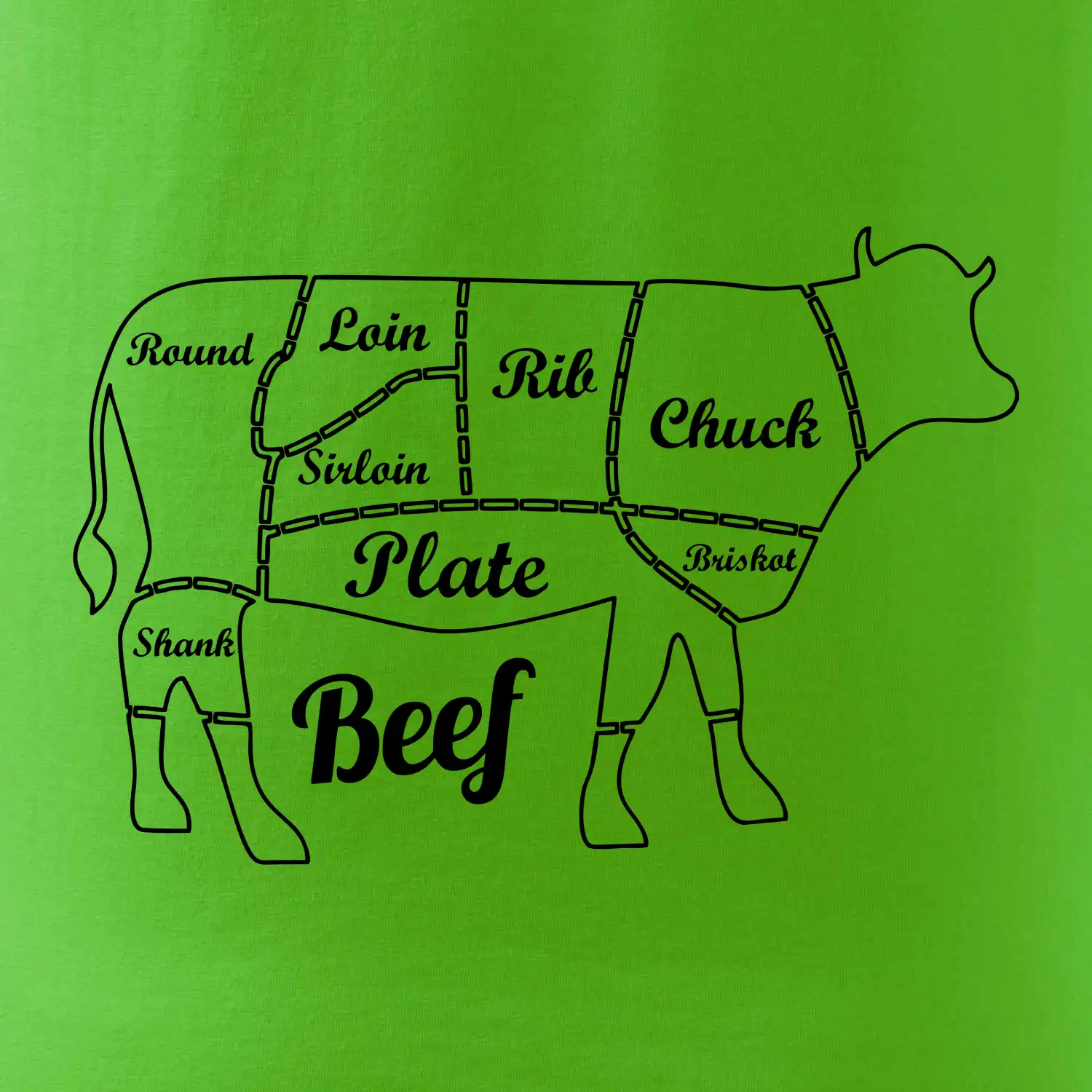Krava nákres rozrezanie Anglicky