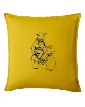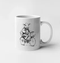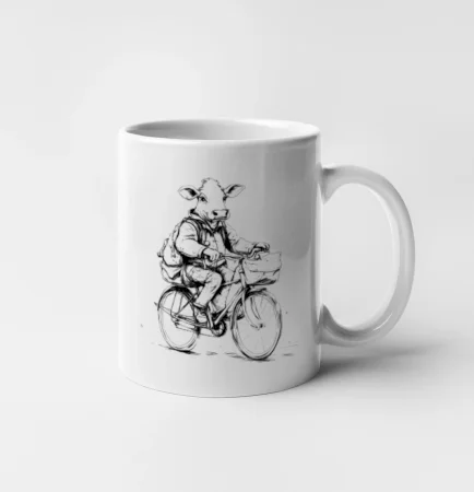 Krava v obleku na bicykli