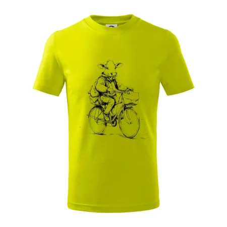 Krava v obleku na bicykli