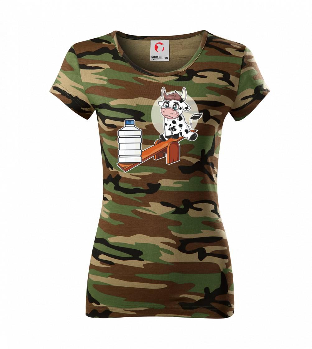 Tričko s kravou, skvelý darček napríklad pre kamošku. Krava na hojdačke.